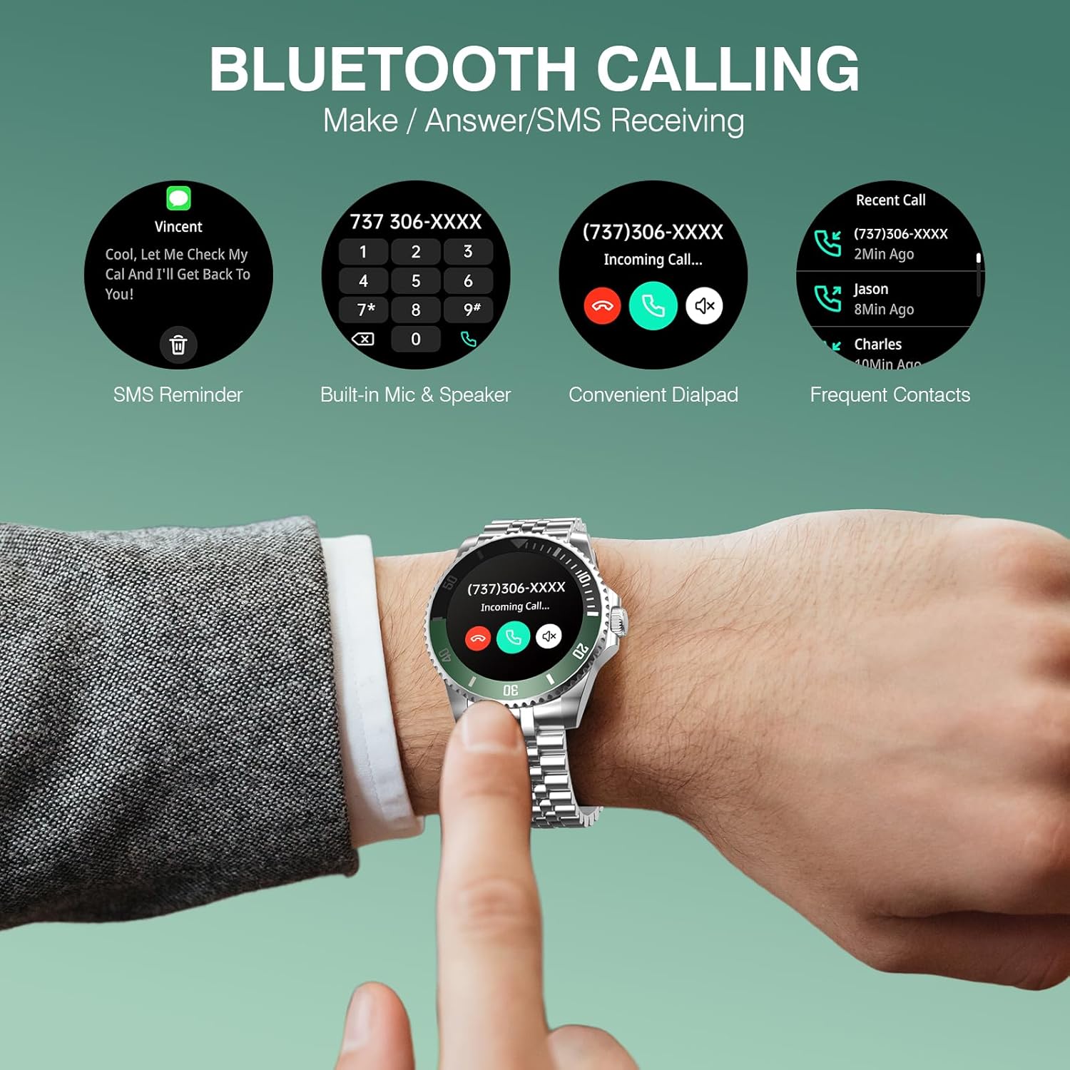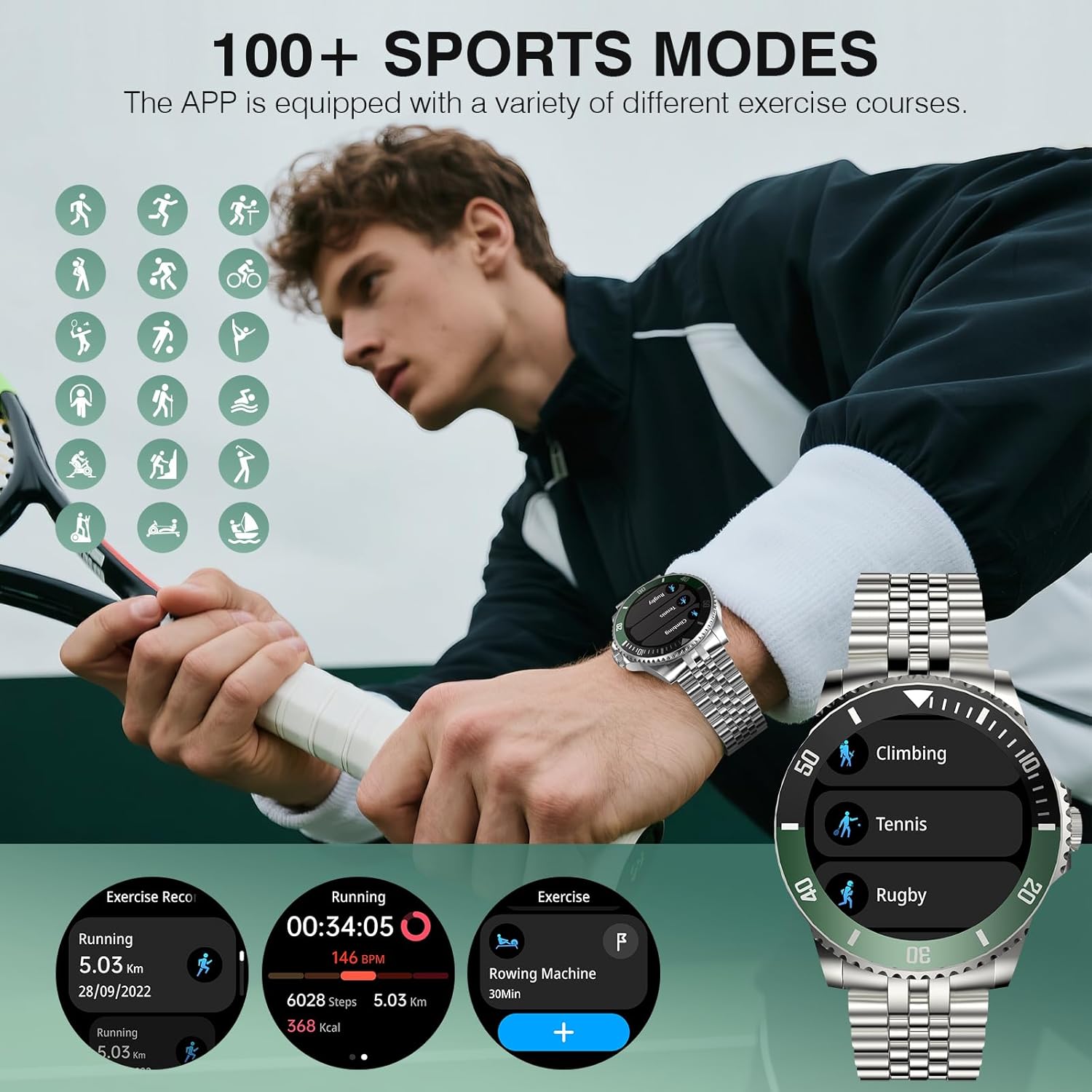 [HD Calls and Message Notifications] Utilizing Bluetooth 5.2 technology for stable transmission, DSP noise reduction, and dual microphones, it ensures clear and stable calls within a range of 10 meters. men smart watch supports making calls, syncing contacts, and accessing call logs. It can receive real-time messages from over 30 social apps, including Instagram, Facebook, and WhatsApp, displaying the content directly for easy access to important information (Note: Replies are not supported).