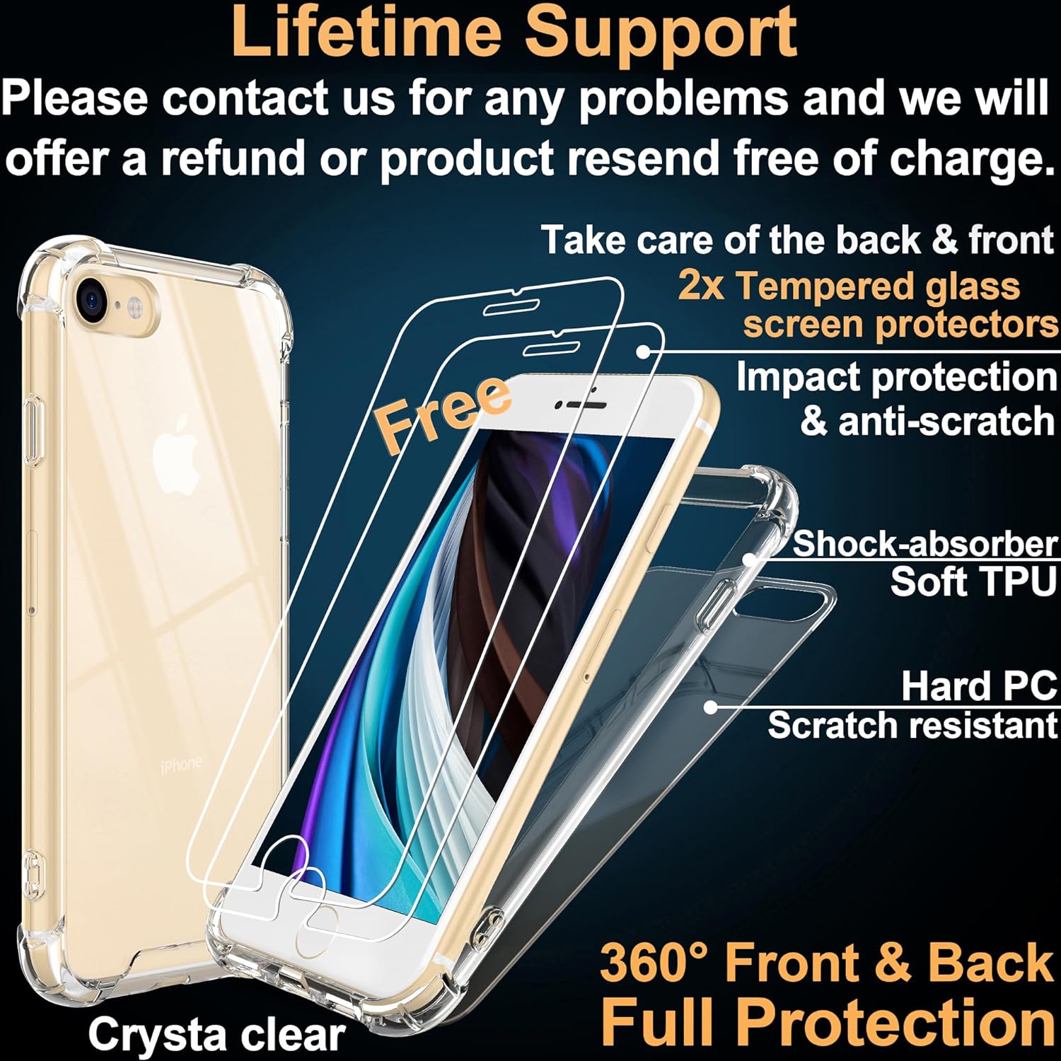 4youquality Case for iPhone SE 2022 / SE 2020, iPhone 8 & iPhone 7, with [2-Pack Tempered Glass Scre…