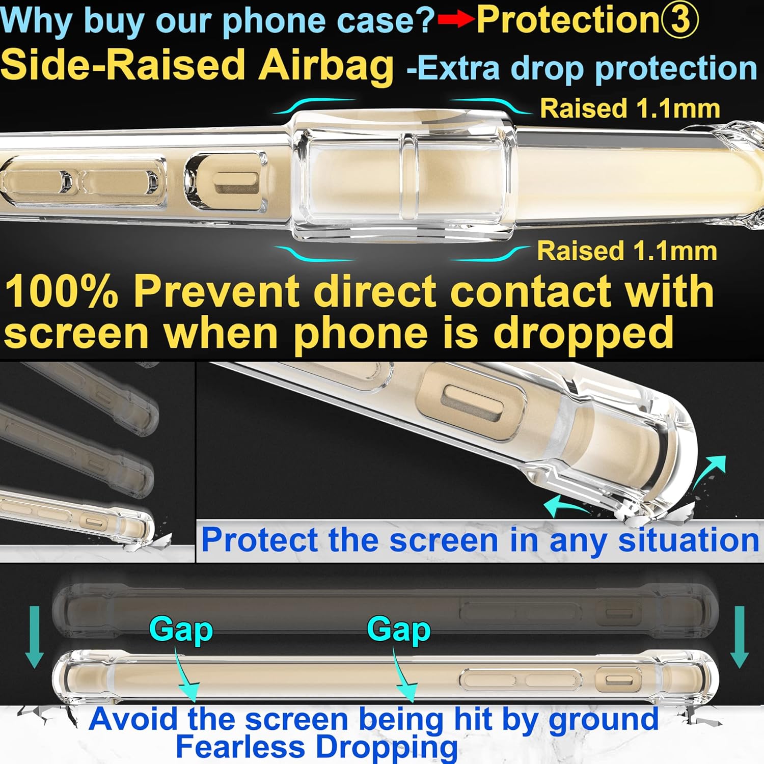 ✔️【Airbag Protection】-Phone Case with four-cornered airbag protection inside. The airbag can bounce and absorb the shocks when the mobile phone accidentally falls.
