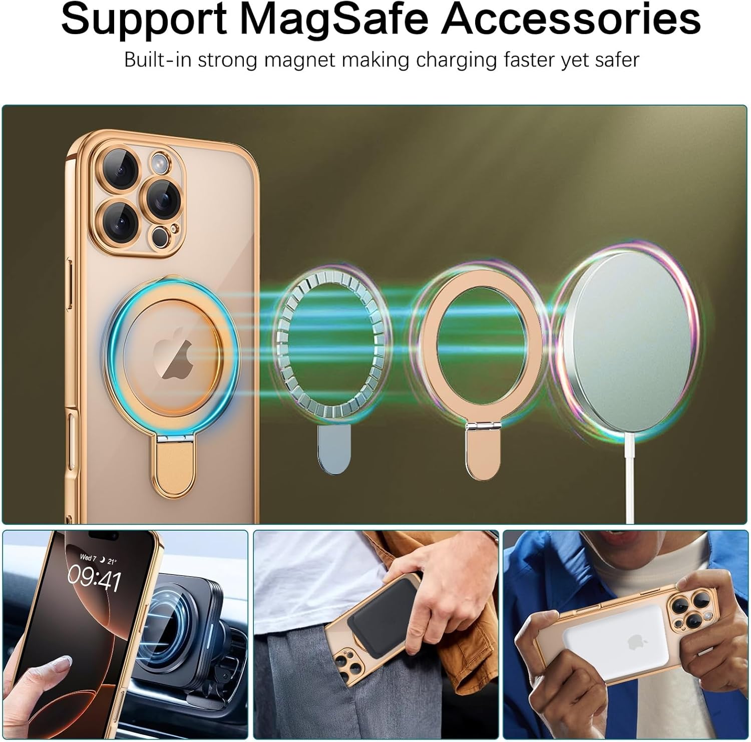 BENTOBEN Magnetic Case for iPhone 16 Pro [Compatible with Magsafe], Invisible Ring Stand Clear Back …