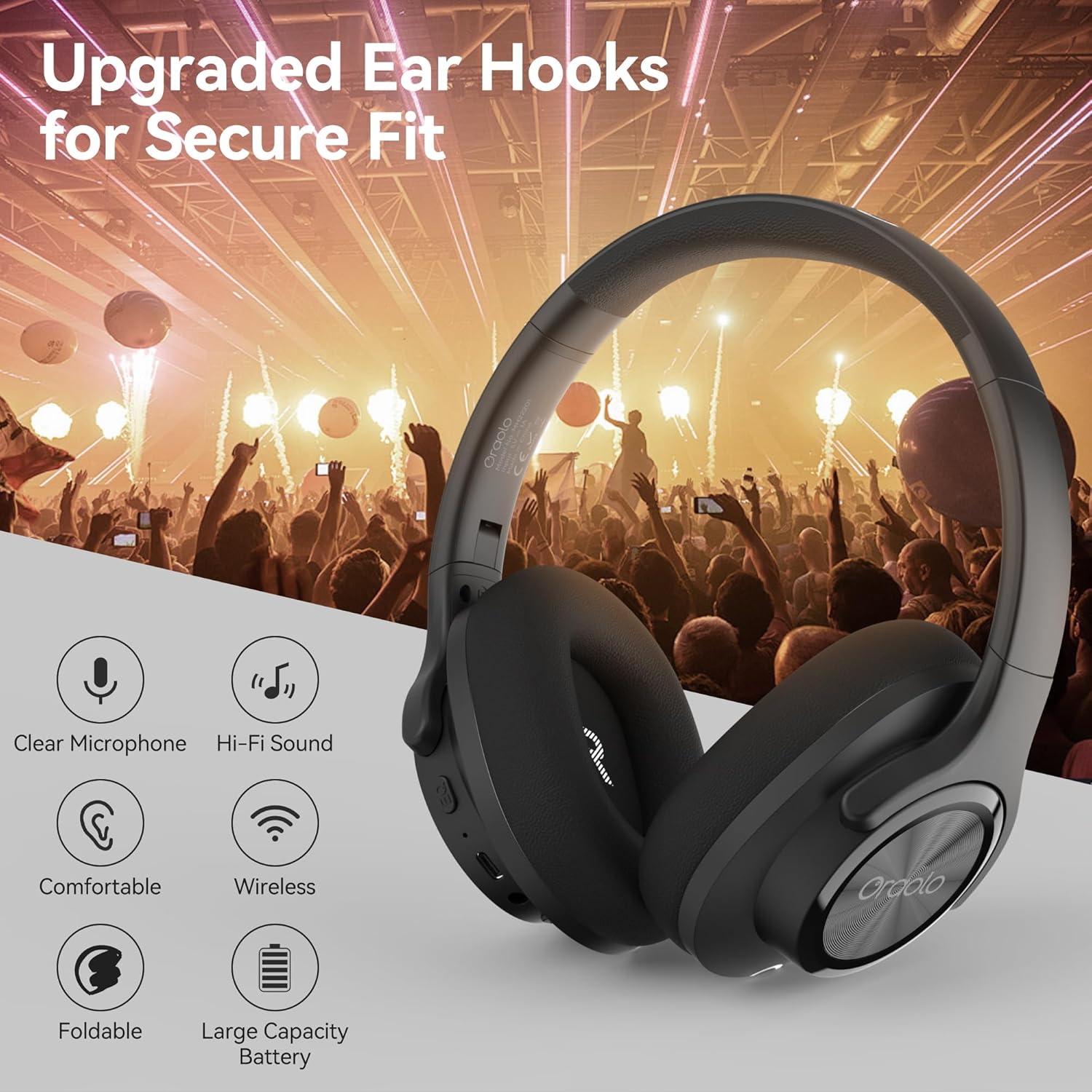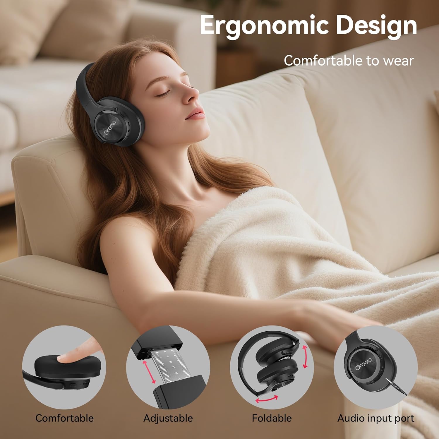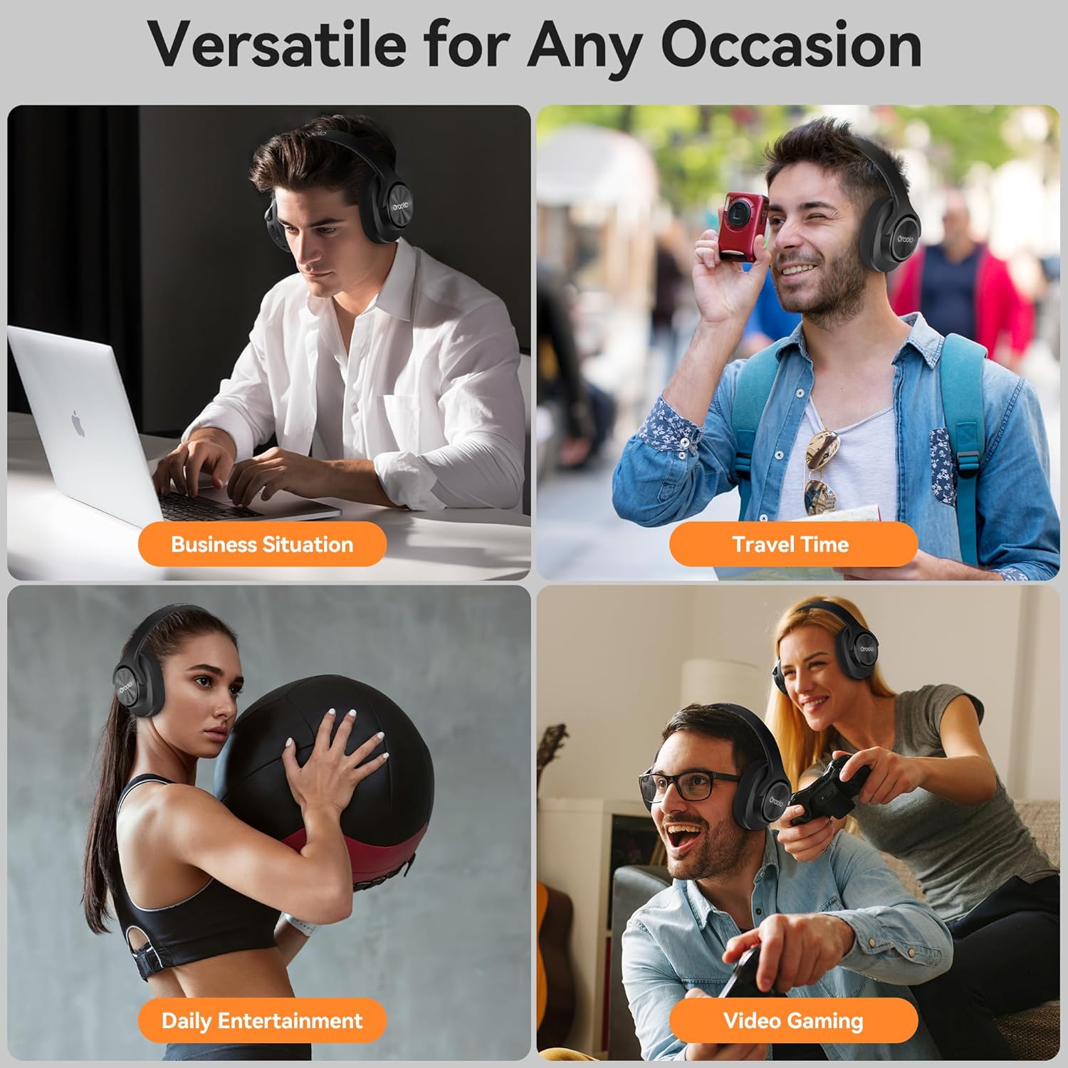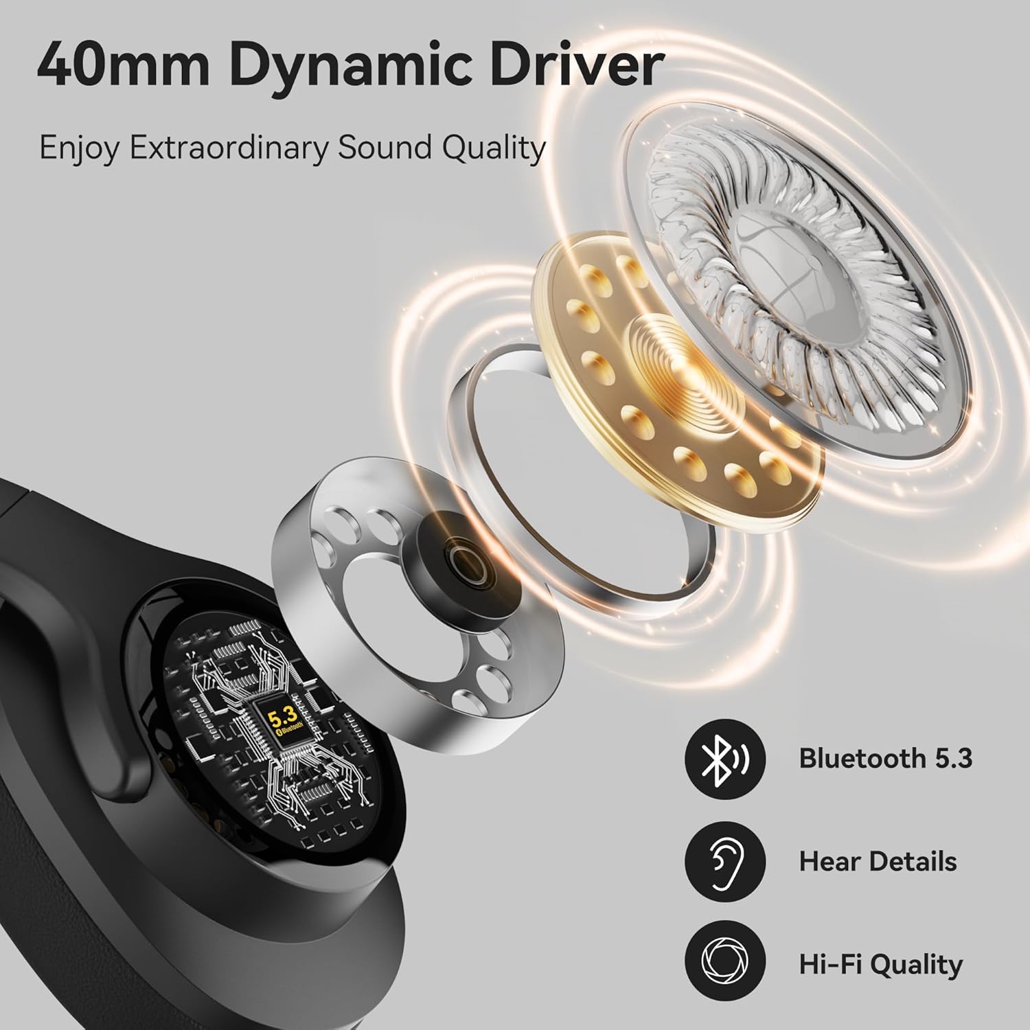 【Bluetooth 5.4 & Built-in Microphone】Bluetooth headphones offers more stable transmission speed, lower latency, and better audio output thanks to Bluetooth 5.4 technology. The built-in microphone allows for hands-free and clear phone calls, so you can enjoy using the wireless headset while making phone calls.