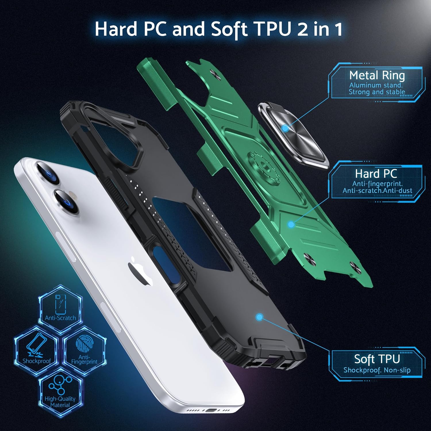 DASFOND Designed for iPhone 16 Case, Military Grade Shockproof Protective Phone Case Cover with Enha…
