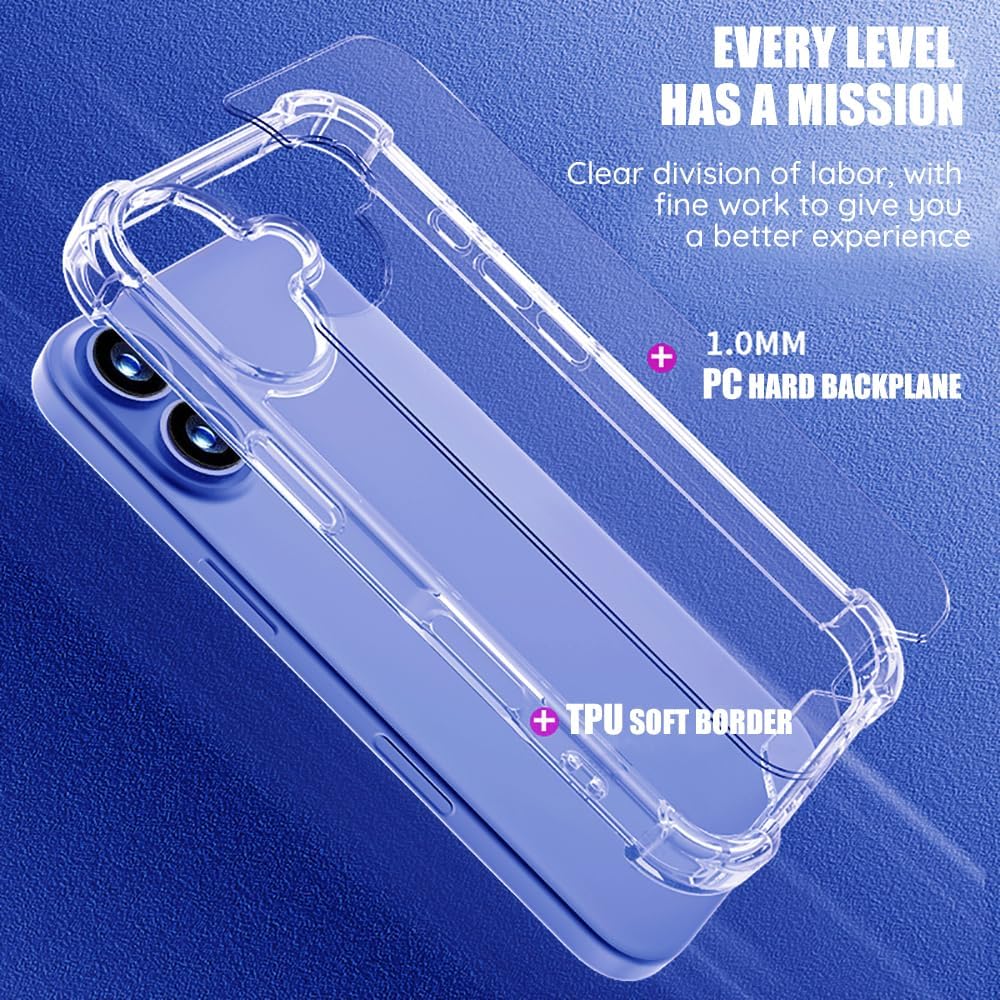 DEREAFF Case for iPhone 16 Plus (6.7-Inch), Clear 16 Plus Case Hard PC Back & Soft TPU Shockproof An…