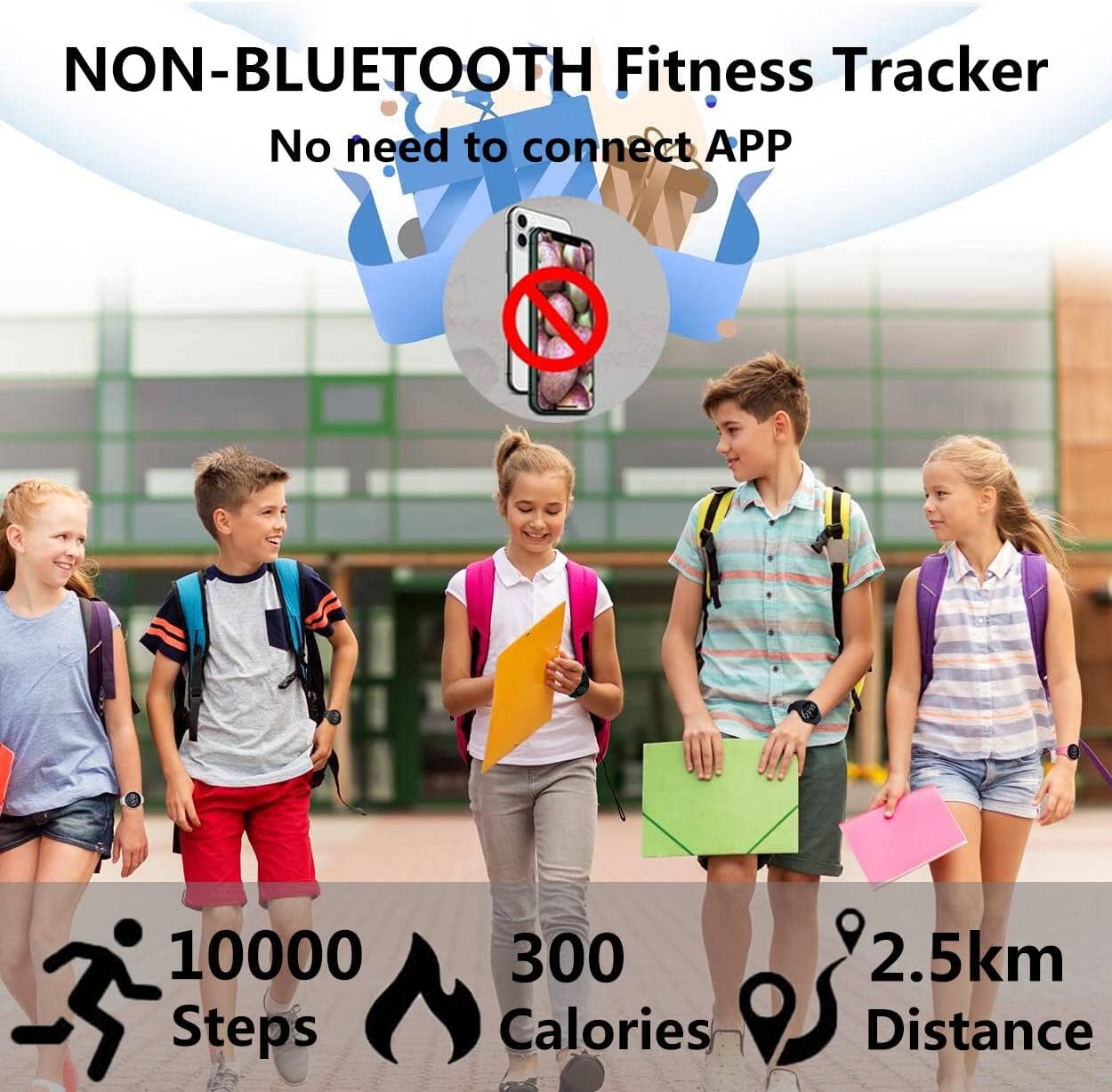 ⌚【Non-Bluetooth & NO APP Activity Tracker】NO need to connect smartphone through blutooth or download a APP. Automatically tracks your steps, distance and calories burned. The operation is simple, especially suitable for children and students. This is a great gift for Kids Boys Girls.