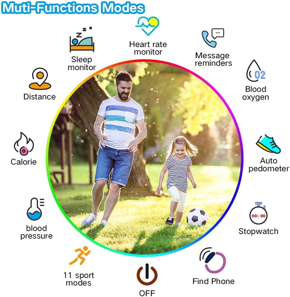 【Message notification】 Your Dwfit Fitness smart watch will make life easier and smarter. When you connect this fitness tracker to your phone, you will never miss your other calls / messages. If you sit for a long time, the watch will vibrate to remind you to lie down, which will help you kids reduce and stay tired.
