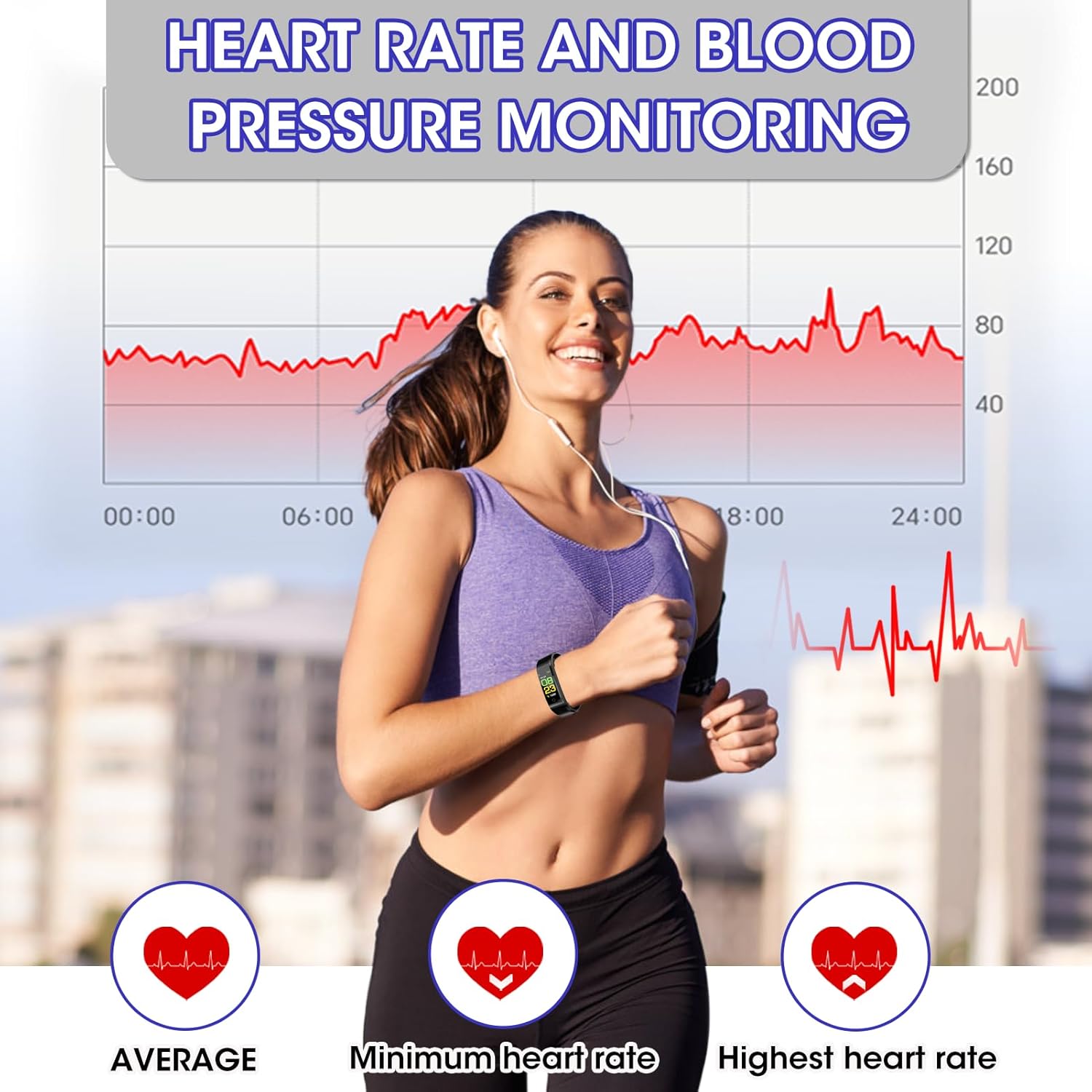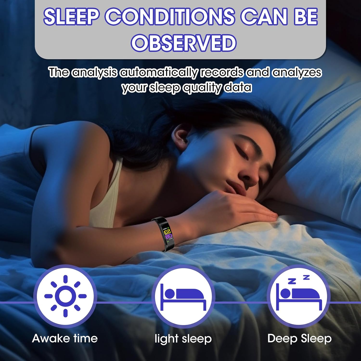 This fitness watch also could be use as a wrist blood pressure monitor. The integrated 24-hour heart rate and blood oxygen sensors deliver consistent monitoring, providing valuable health metrics to help you stay informed. The advanced sleep analysis function breaks down your sleep into deep, light, and wake periods, giving you actionable feedback to develop better rest habits.