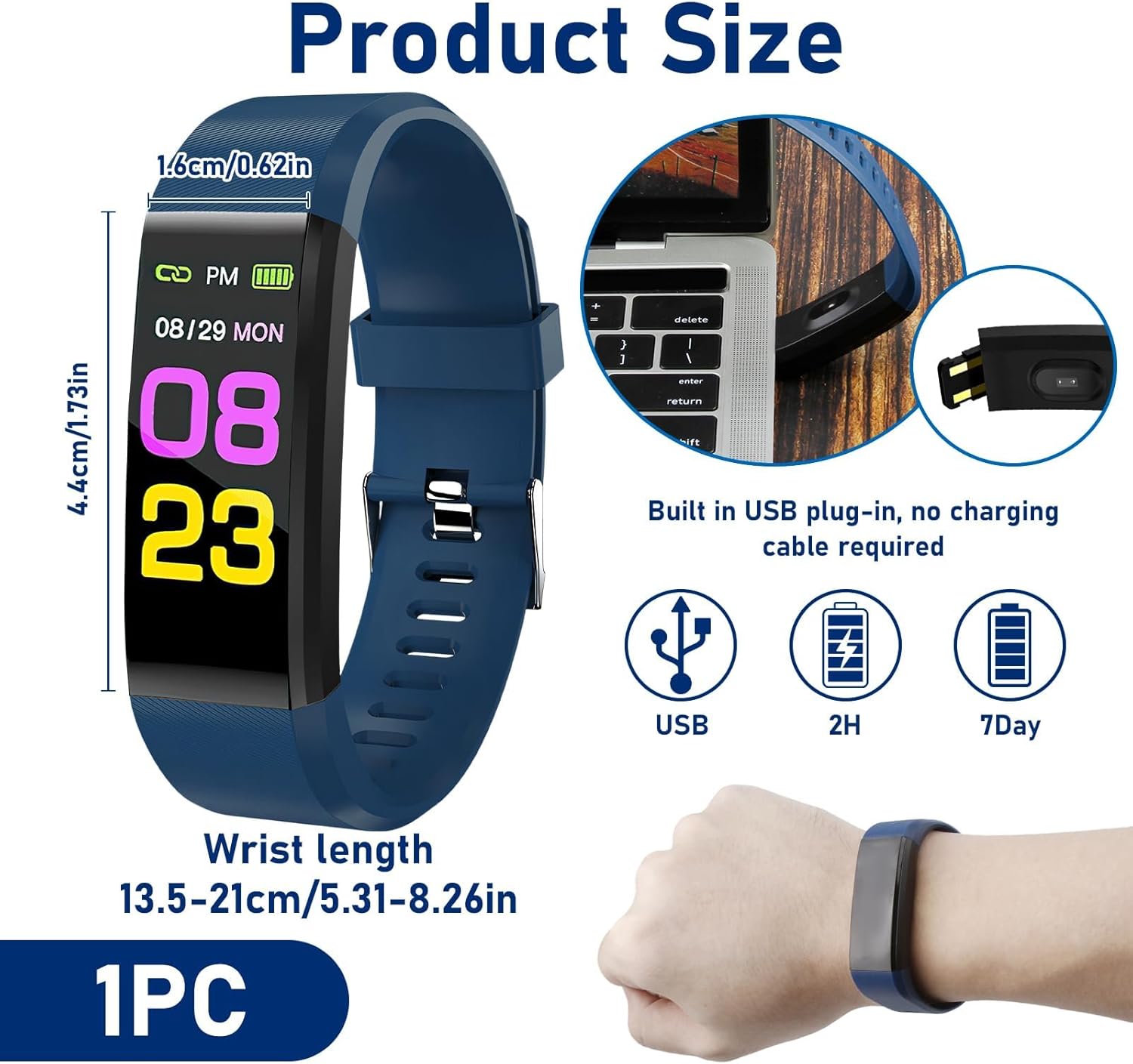 Comprehensive Activity Tracker: Trackers for fitbit monitor your heart rate, steps, calories burned, distance, and active minutes throughout the day. This versatile fitness tracker helps you achieve your health and fitness goals with ease.For man,ladies,kids fitness watch.Pedometer requires mobile app-This device cannot count steps on its own. It must be paired with a smartphone via Bluetooth and used with the designated app to sync and display step data.