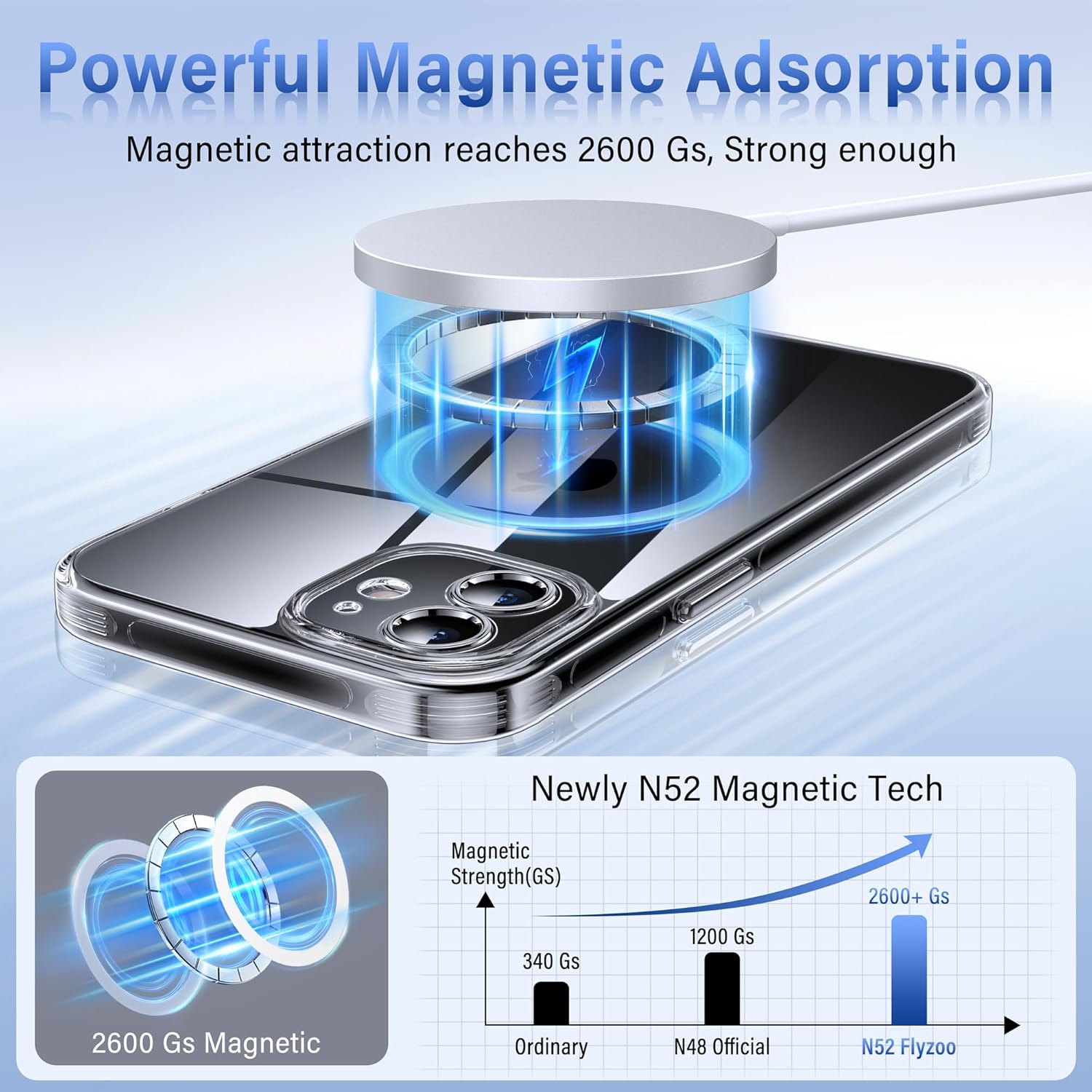 [Super Strong Magnetic Force] Powerful integrated magnet N52 doubles the magnetic force. Compatible with all magnetic accessories such as wireless chargers, wallet, battery and magnetic car holder.