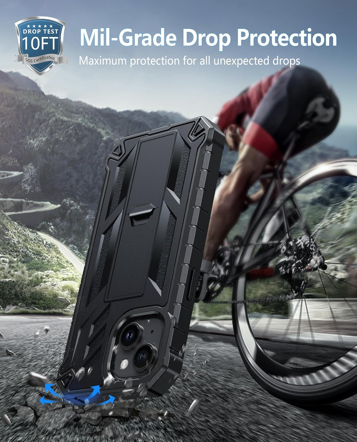 FNTCASE for iPhone 15/14/13 Case: Shockproof Military Grade Protective Cover with Kickstand – Dual L…