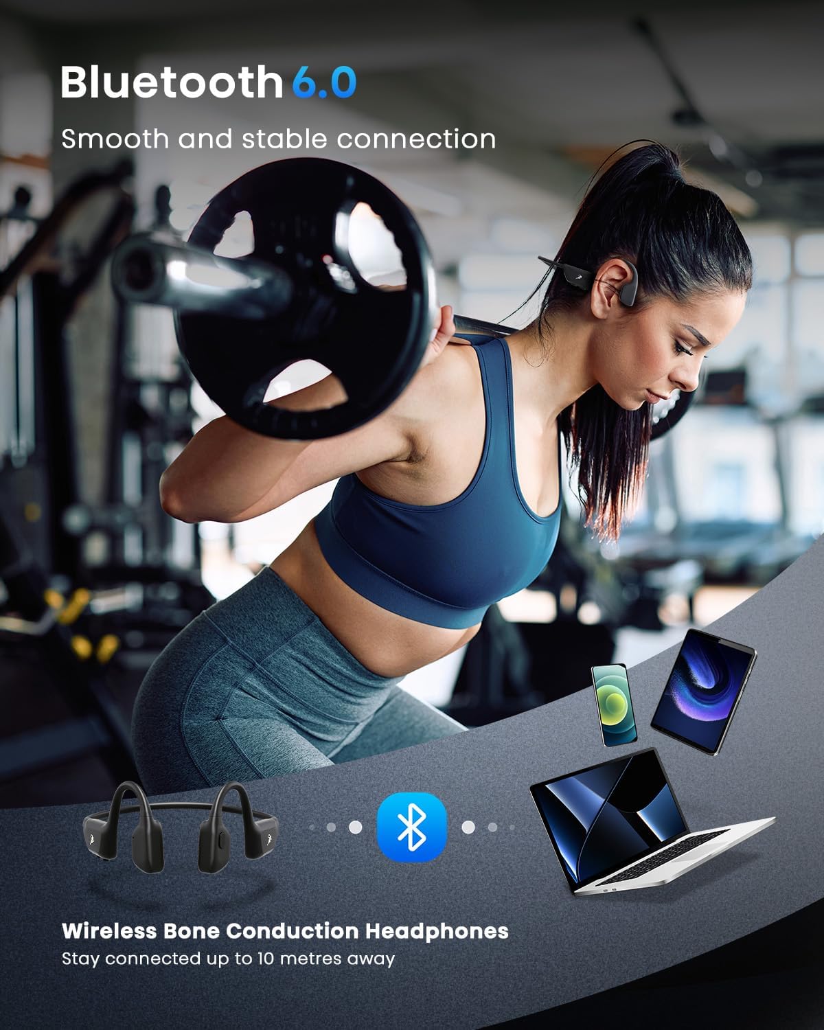Stable Bluetooth 6.0 Connectivity:Our bone conduction headphones are equipped with the latest Bluetooth 6.0 technology, ensuring a faster, more reliable wireless connection. Enjoy seamless pairing with your smartphone, tablet, or laptop, with reduced latency and stronger signal stability even during running, cycling, or intense workouts. Experience clearer calls, uninterrupted music, and a smooth open-ear listening experience without the hassle of tangled wires