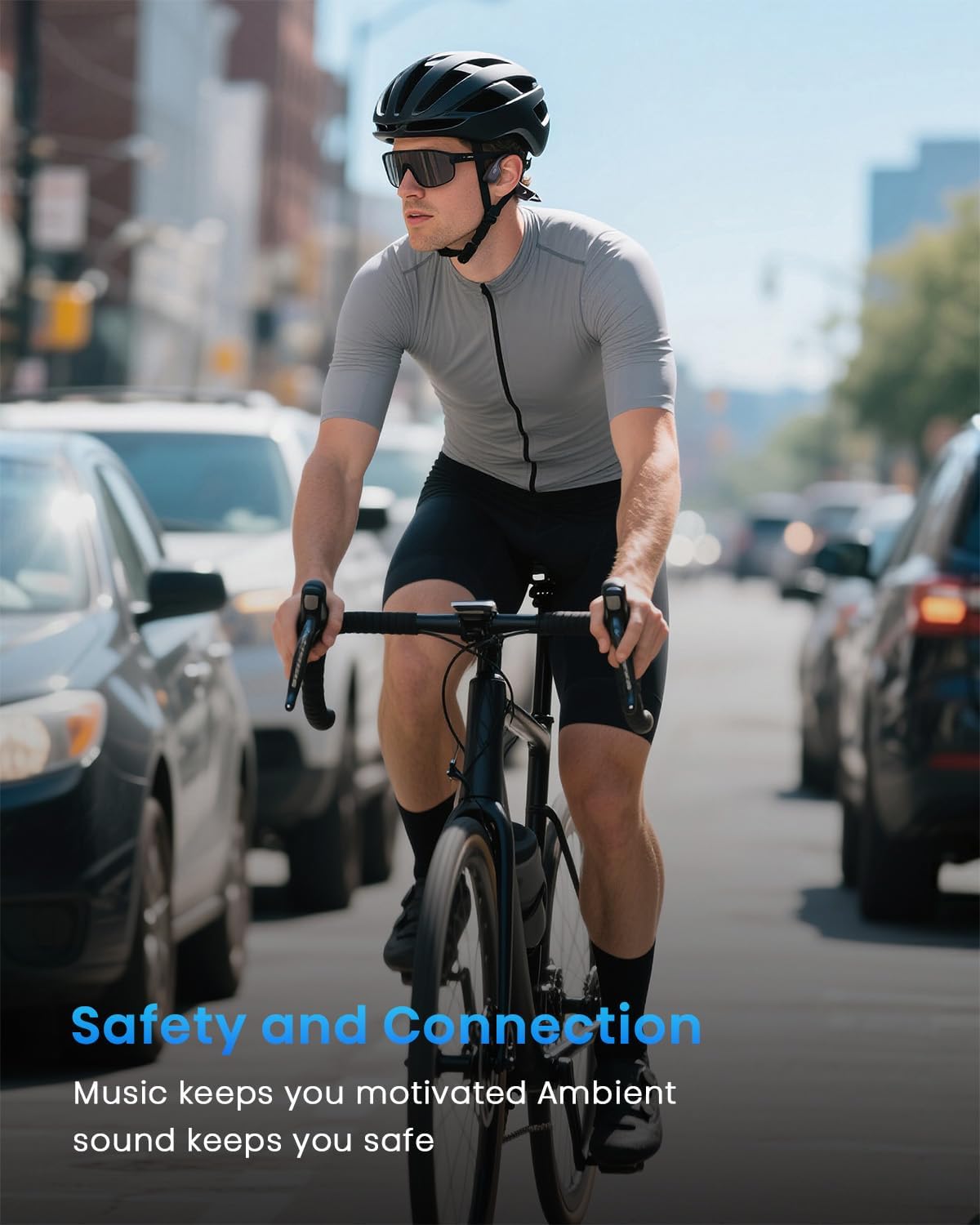 Open-Ear Safety for Active Lifestyles:Our wireless bone conduction headphones feature an open-ear design that lets you enjoy music while staying alert to your surroundings. Weighing just 26g, they are lightweight and comfortable for all-day wear. Ideal for running, cycling and fitness, they provide a secure fit and ensure you can hear traffic and alerts, keeping every workout safe and enjoyable