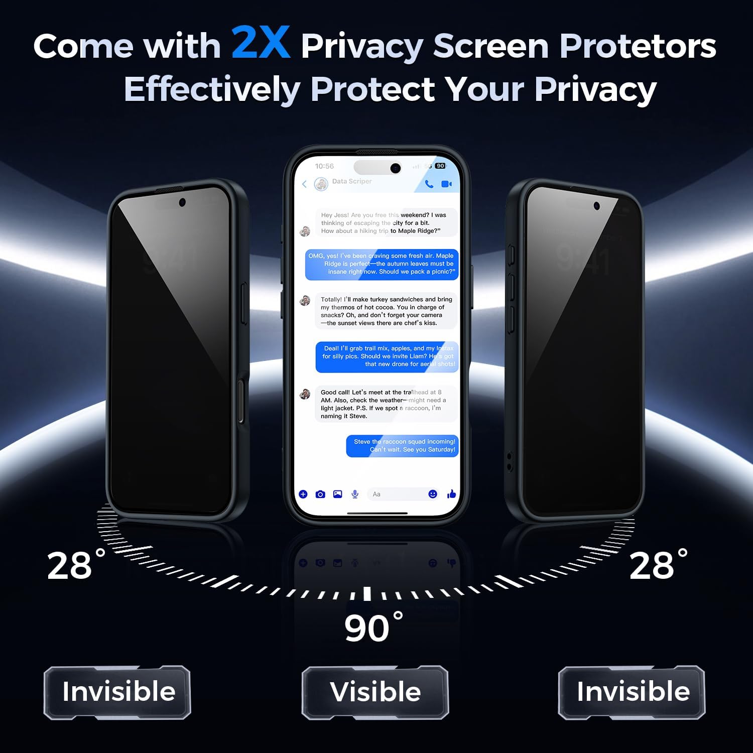 2X Privacy Screen Protectors: For iPhone 17 Pro, The Screen is Only Visible to the Person in front. Keeps Your Private Moments and Sensitive Details from the Curious Eyes of Strangers, Especially on the Bus, Lift, Underground, or Other Public Occasions.