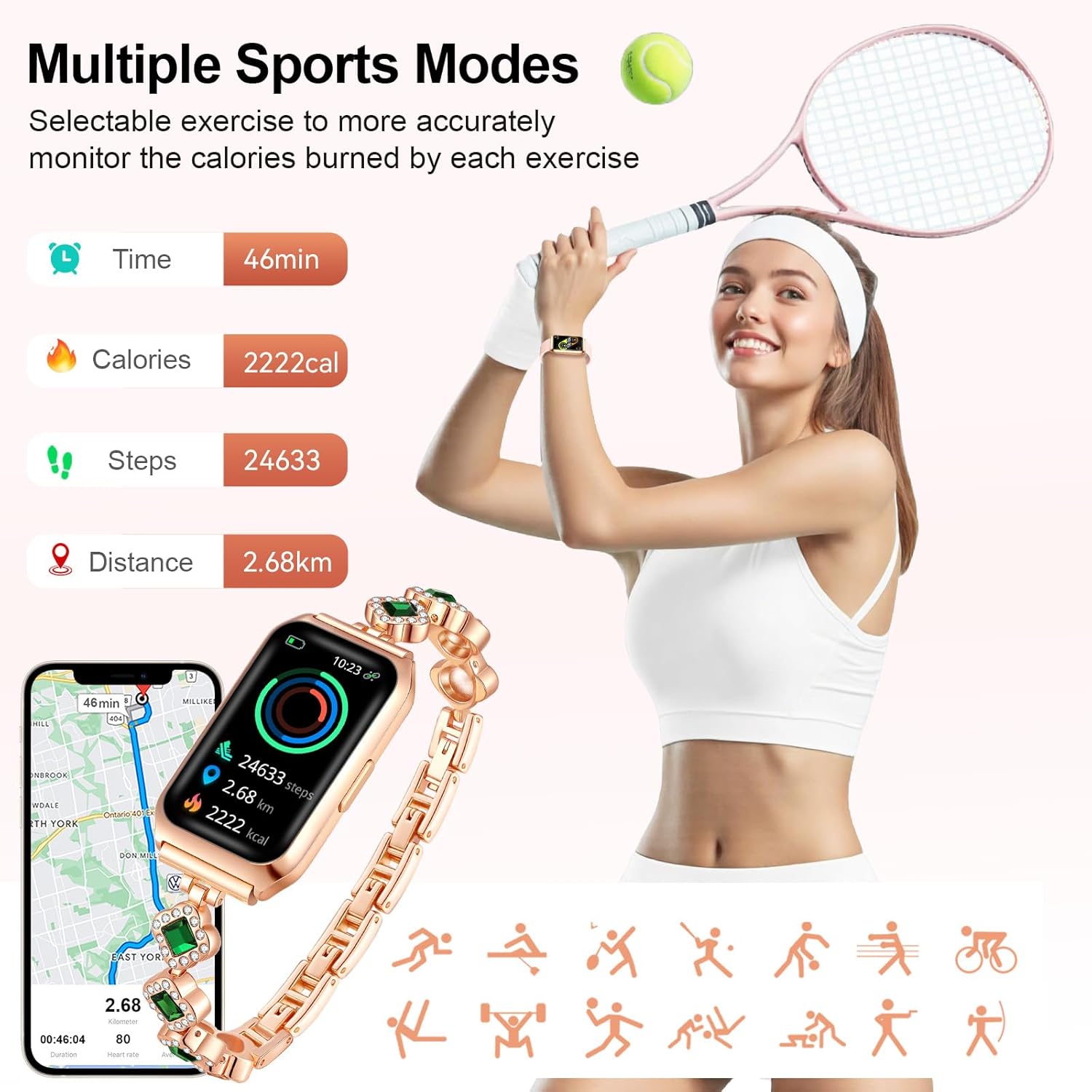 Excellent Appearance Design and Ideal Gifts: Our smart watch is personalized for women, which equipped two type of watch bands, the metal band has a elegant appearance is suitable for any daily occasion, and silicone band is casual and suitable for sport. The fitness tracker watches for women with a beautiful appearance design, it is suitable for daily use; It is also a ideal great gift for Mother’s Day, Birthday, Christmas, Thanksgiving, any anniversary and sports competition