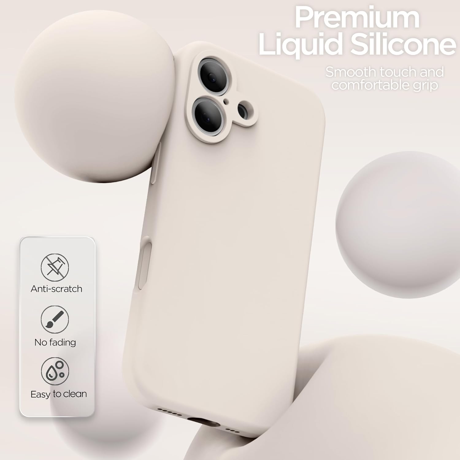 Liquid Silicone Material: INGIDO iPhone 17 silicone case made of premium liquid silicone material, offering scratch and fingerprint resistance while viding a silky-soft touch. It is easy to clean, soft and durable