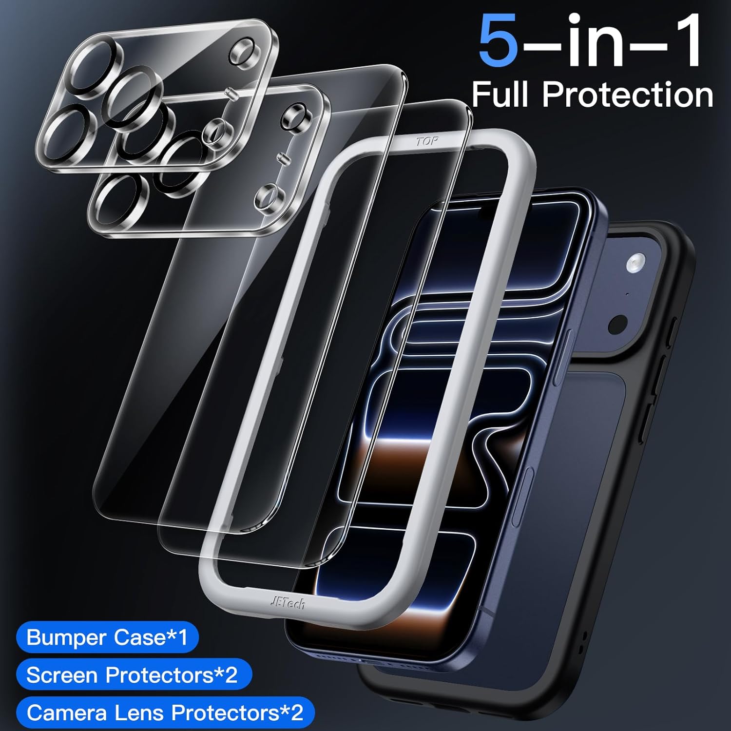JETech 5 in 1 Matte Case for iPhone 17 Pro Max 6.9-Inch with 2-Pack Each Tempered Glass Screen Prote…