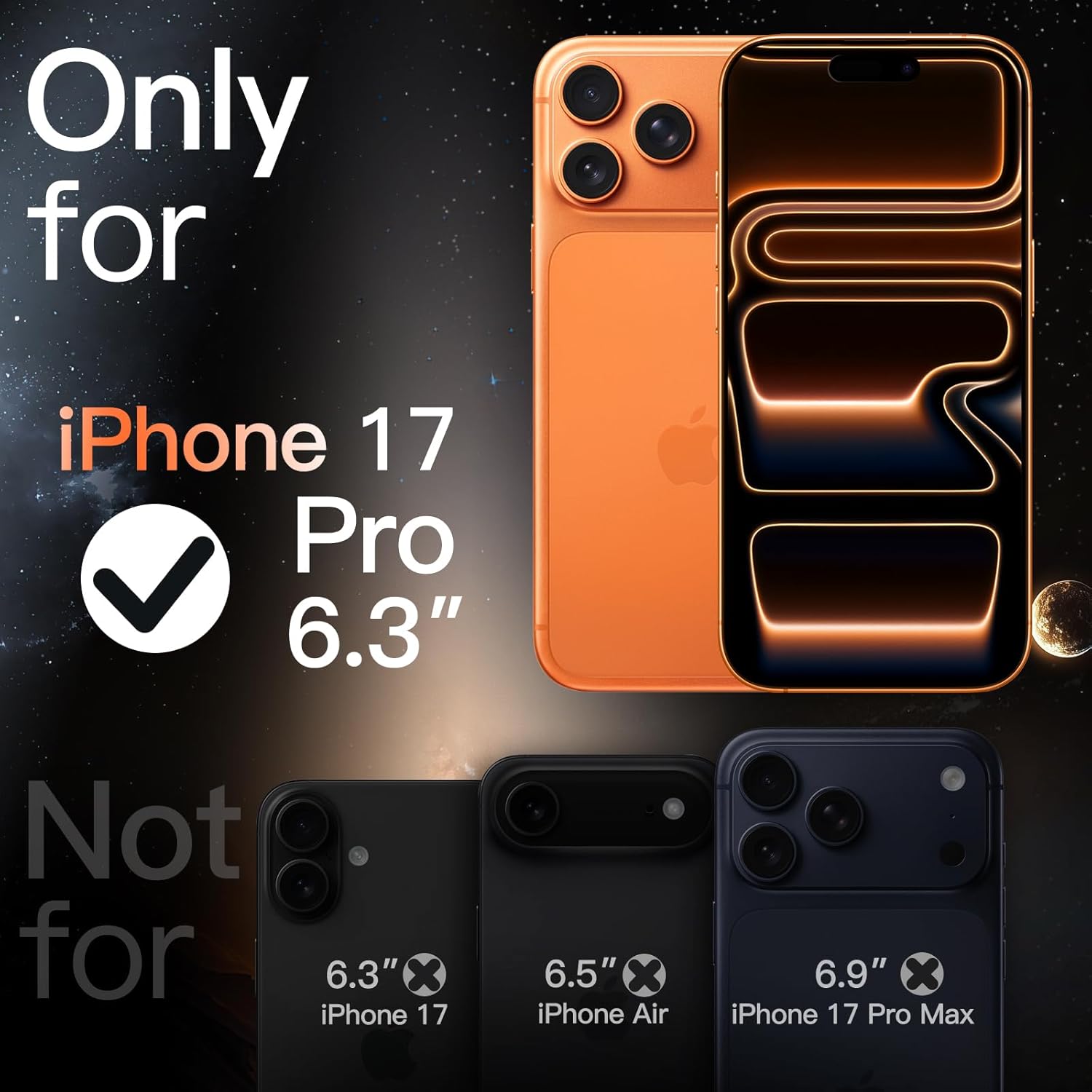 [Perfectly Fit] Flawlessly designed for iPhone 17 Pro 6.3 inch. NOTE: Not for iPhone 17 / Air / 17 Pro Max. The perfectly aligned cutouts allow full access to the camera, speaker, buttons and other ports. Lightweight design adds no bulk to your phone