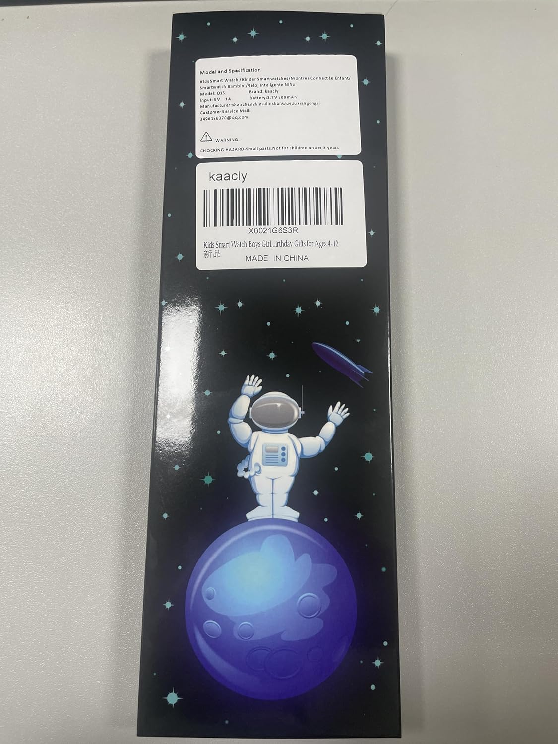 Product type: Kids smart watch Watch’s Languages(5 kinds): English,Francais,Espanol,ltaliano,Deutsch Screen: 1.54inch lPS Touch screen,240*240 pixels Memory: 479.8MB SlM card: Not support Camera: With 0.08MP front camera Operation method: Touch+1 function button Battery: 400mAh Polymer lithium ion battery Charging method: By USB charging cable Charging time: about 2~3 hours Warm Tips: This kids smart watch is a kind of educational and entertaining toy,no call function,no SlM card required,no need to download any App