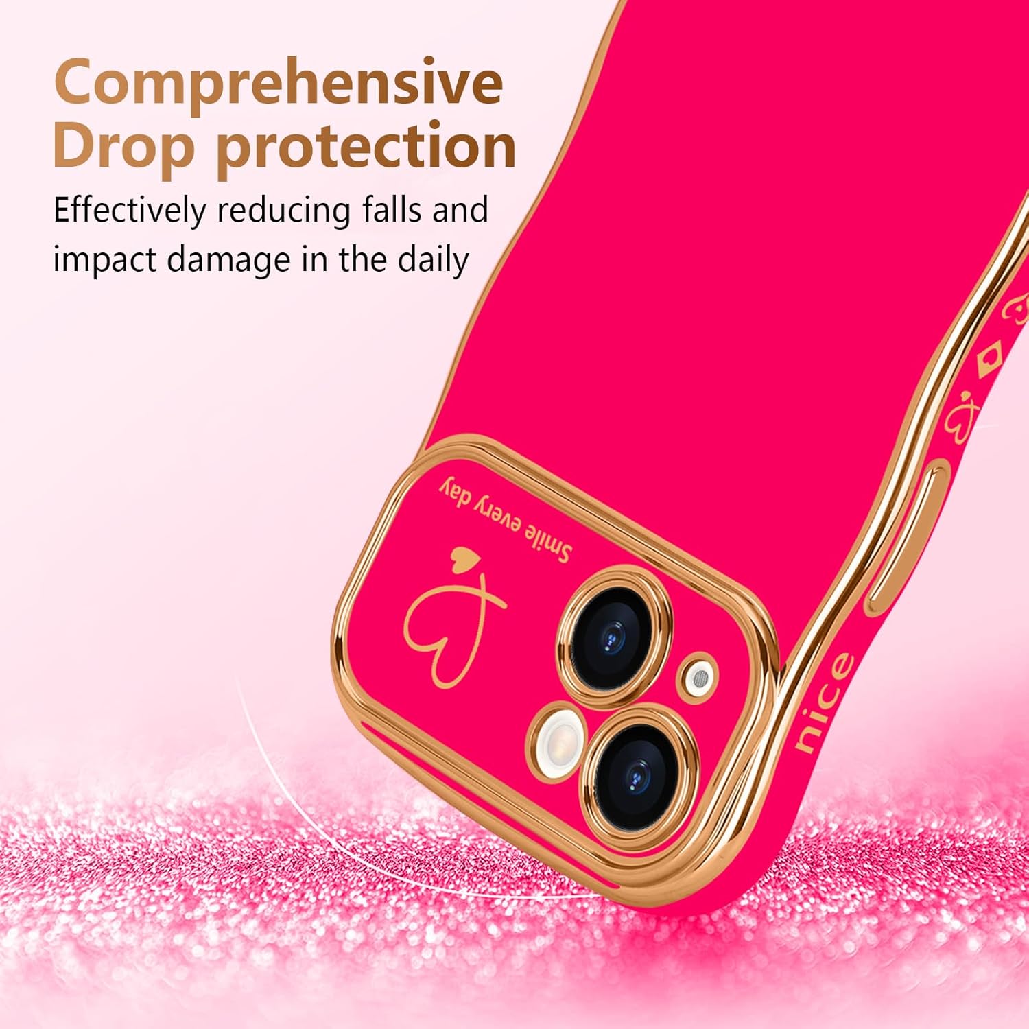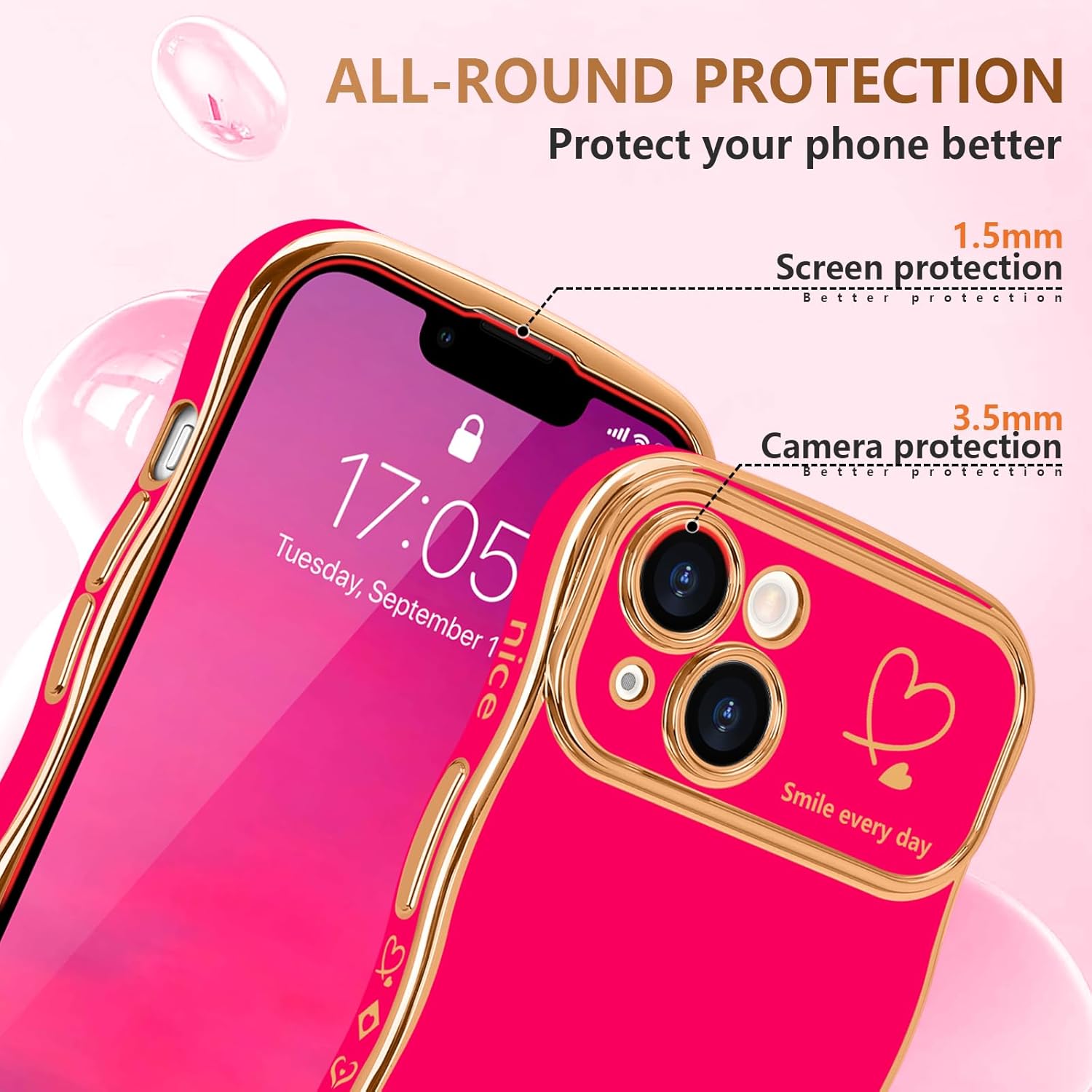 Elegant Electroplated Cute Love Heart Wavy Shape Phone Case Specially Designed for iPhone 14 Plus 6.7 inch.Support Wireless Charging