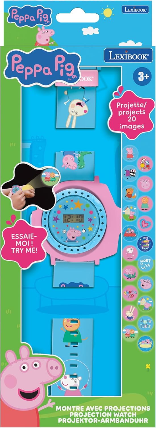 This amazing 2-in-one watch projects 20 different projections of Peppa Pig characters, with Peppa, her family and her friends.
