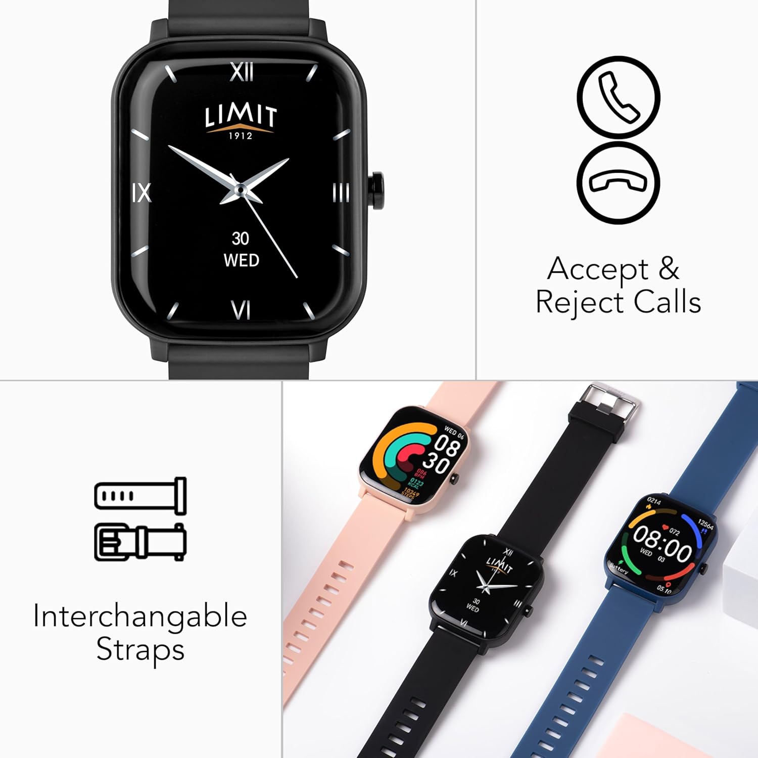Limit 37mm Black Unisex Smart Watch Fitness Tracker with Bluetooth Calling Heart Rate Sp02 Android a…
