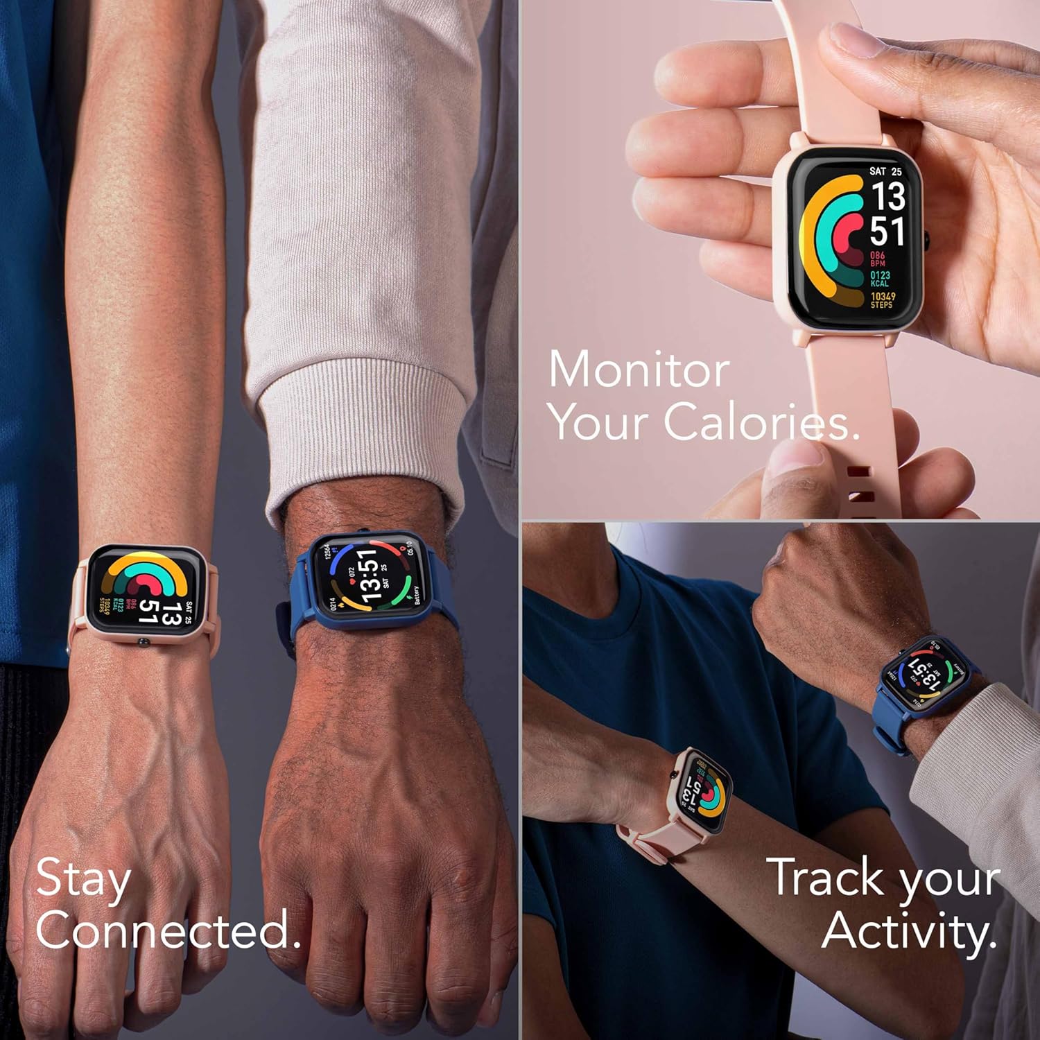 EXTRA FEATURES – Heart rate and blood oxygen monitoring, guided breathing exercises, remote camera, and music controls, 13 language settings to choose from, alarms, weather, find my watch/phone + more.