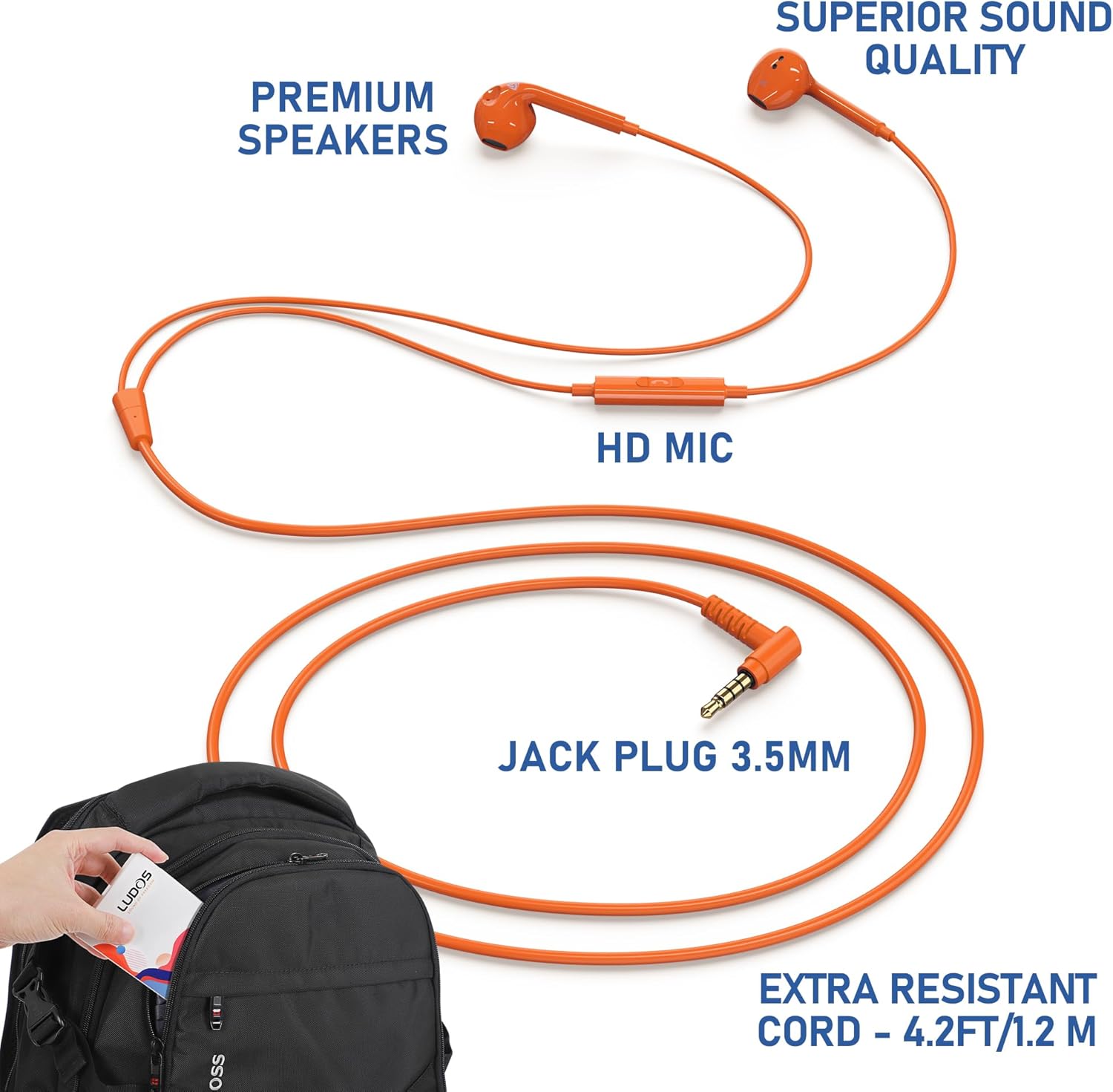 Ludos ZENITH Wired Earbuds in-Ear Headphones, 2 Year Warranty, Earphones with Microphone, Corded for…