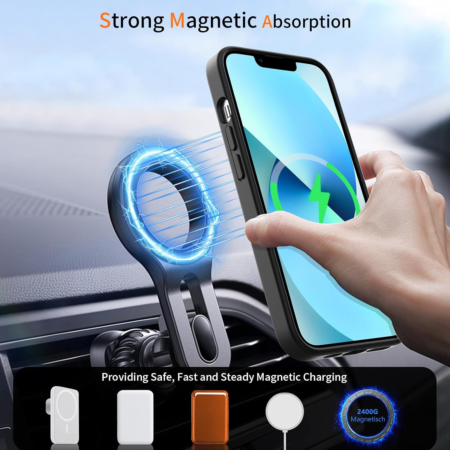 Upgraded Super Magnetic Adsorption: Lyhsgao phone case is specially designed for iPhone 14, with a built-in N52 super magnetic ring and a magnetic force of up to 2400G, which is 6-7 times stronger than the ordinary iPhone 14 case magsafe. Fully compatible with MagSafe accessories, it can safely fix the phone to magnetic accessories such as car brackets, magnetic wallets and mobile power supplies, achieving faster and safer wireless charging without risk of dropping.