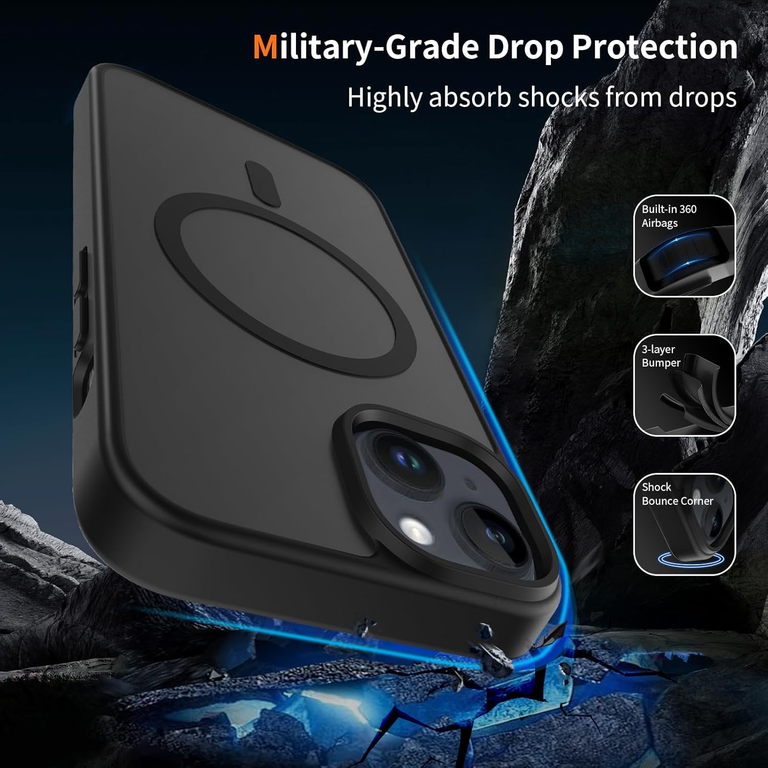 Military-Grade Drop Protection: Combining a sturdy PC backplate with a flexible TPU frame, featuring built-in air cushions and silicone buffers at all four corners to effectively absorb 99% of impact from drops. Provides comprehensive protection for your phone even from falls up to 14 feet.