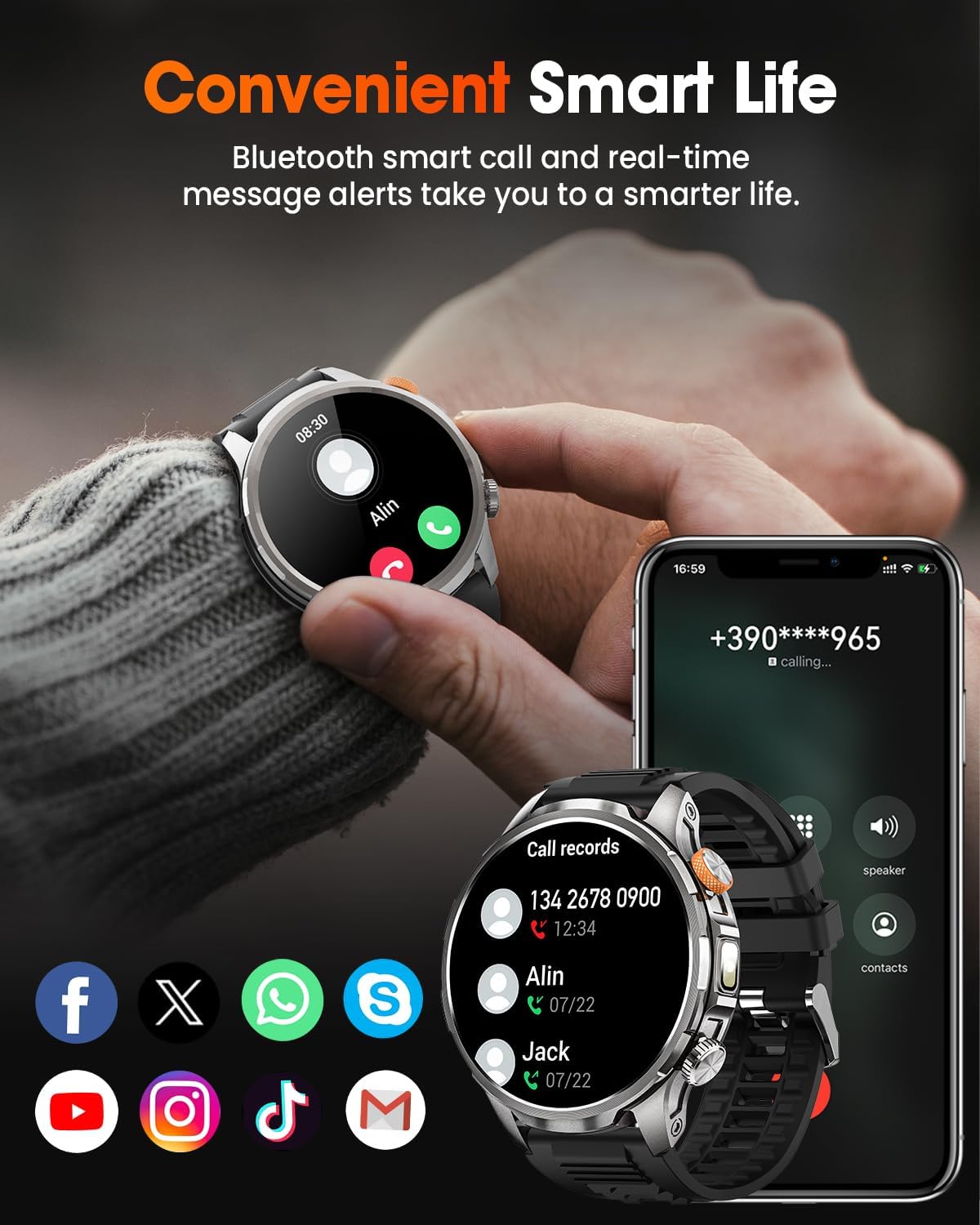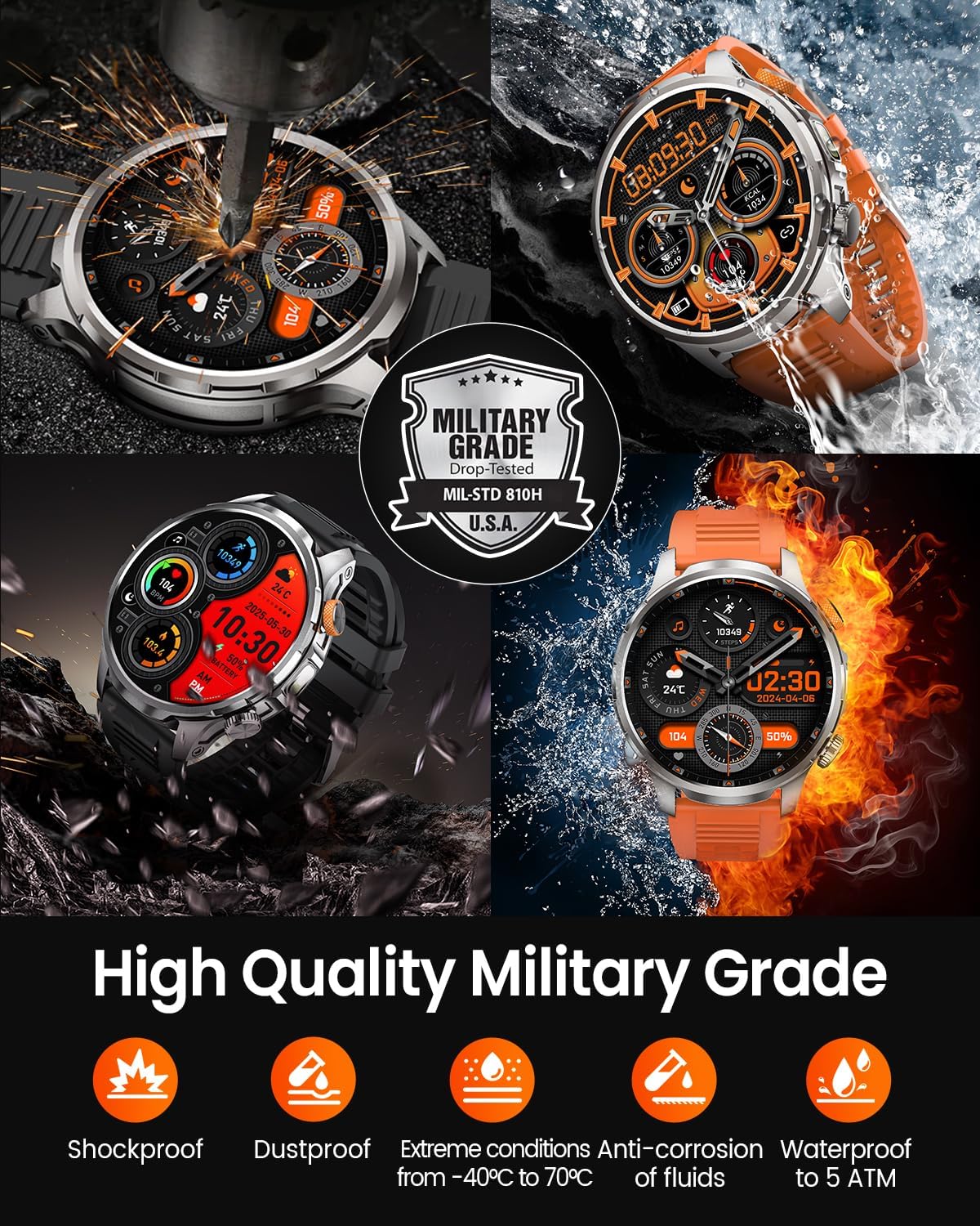 110+ SPORTS MODES & 5ATM WATERPROOF: The men’s fitness watch offers 110+ sports modes, can meet your needs in various sports scenarios. Military-grade triple protection technology (shockproof, scratch and drop proof) makes it more sturdy and durable, 5ATM waterproof and three-dimensional shockproof structural design meets moisture and extreme outdoor environments during your adventure.
