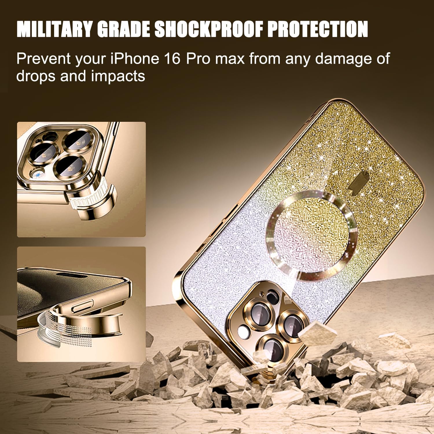 Misscase for iPhone 16 Pro Max Magnetic Glitter Case, Comes with Camera Lens Protector, Gradient Spa…