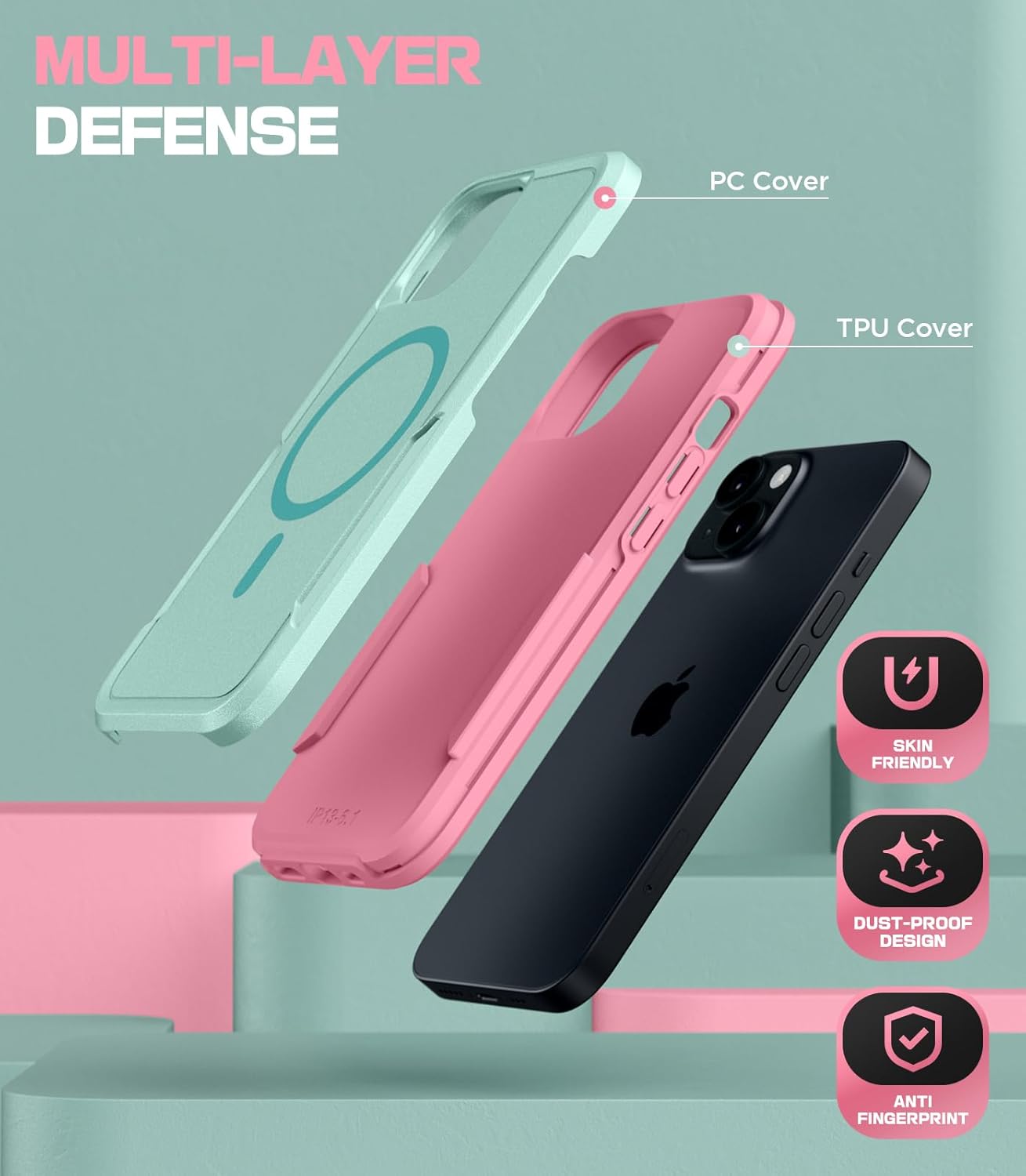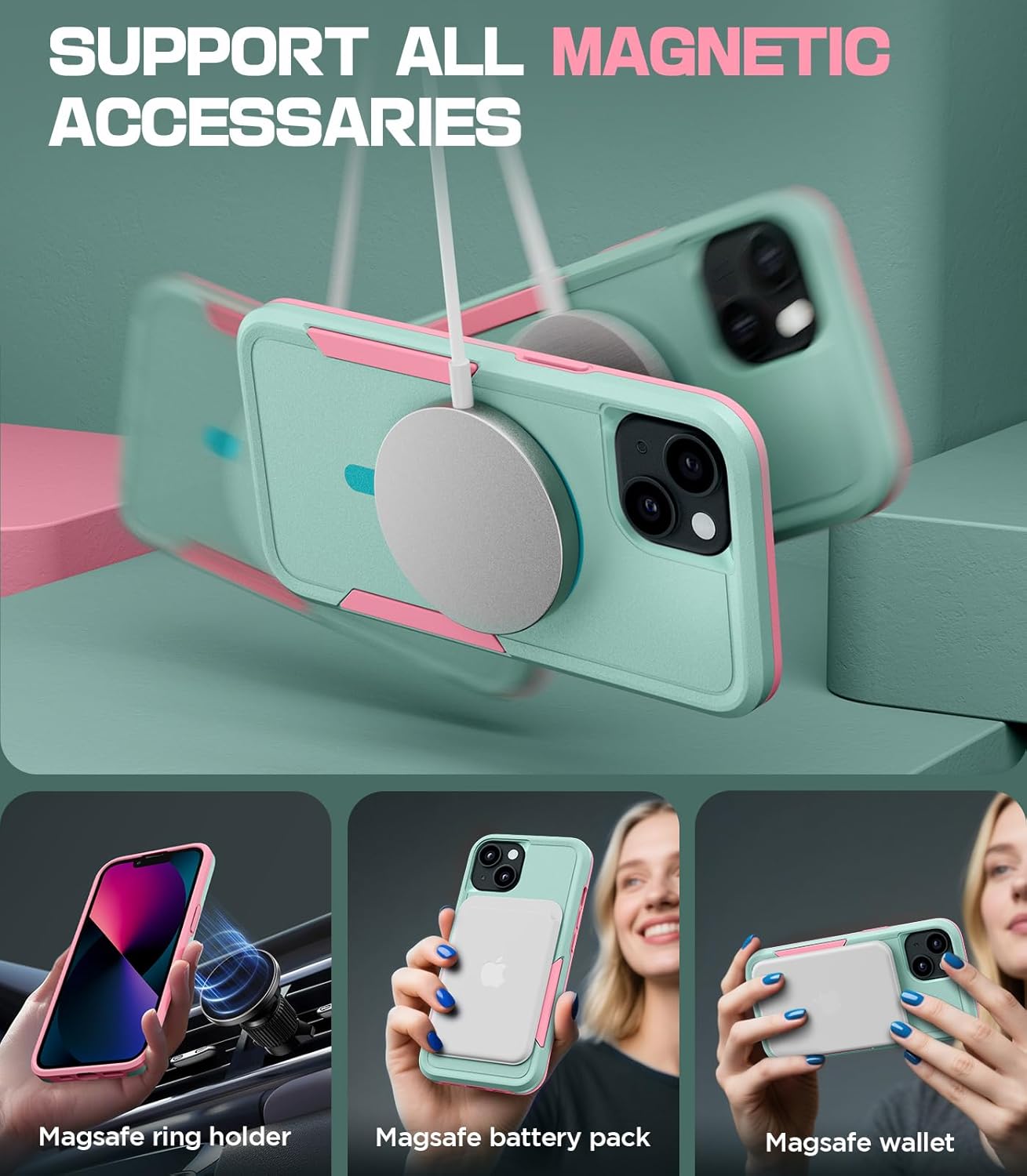 MobNano Magetnic Case for iPhone 14 & iPhone 13, Compatible with Magsafe, with Multicolor Protective…