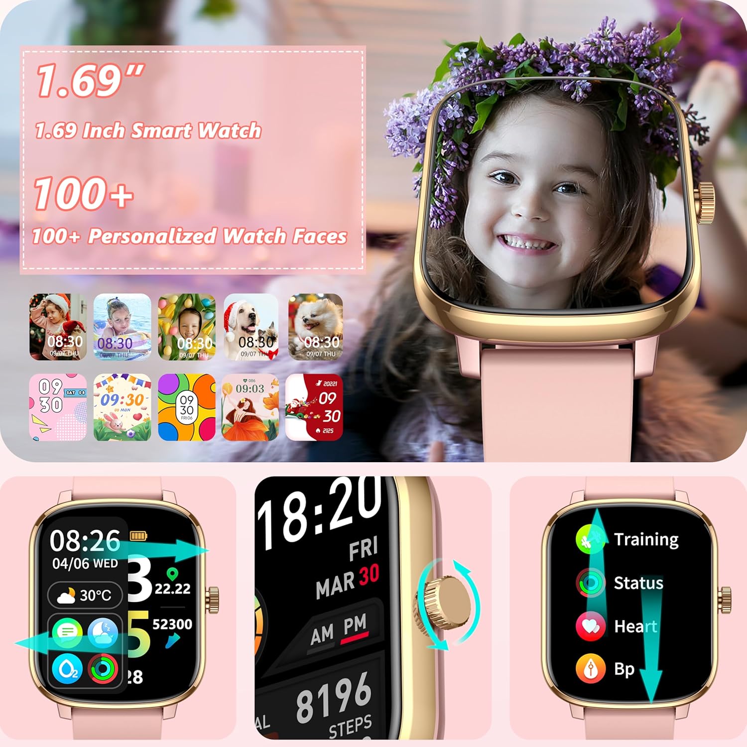 Popglory Smart Watch for Women Men Kids, 1.69″ Smartwatch, 44mm Fitness Tracker Watch with Blood Pre…