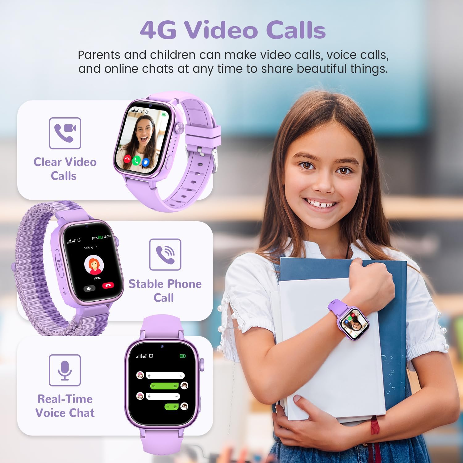 3 TYPES OF POSITIONING: Using GPS, LBS and WiFi technology, this kids smart watch allows parents to check their children’s location in real time. In emergencies, by holding the SOS button for 2 seconds, the 4G kids watch will automatically call 3 preset emergency contacts, ensuring immediate response to protect the child