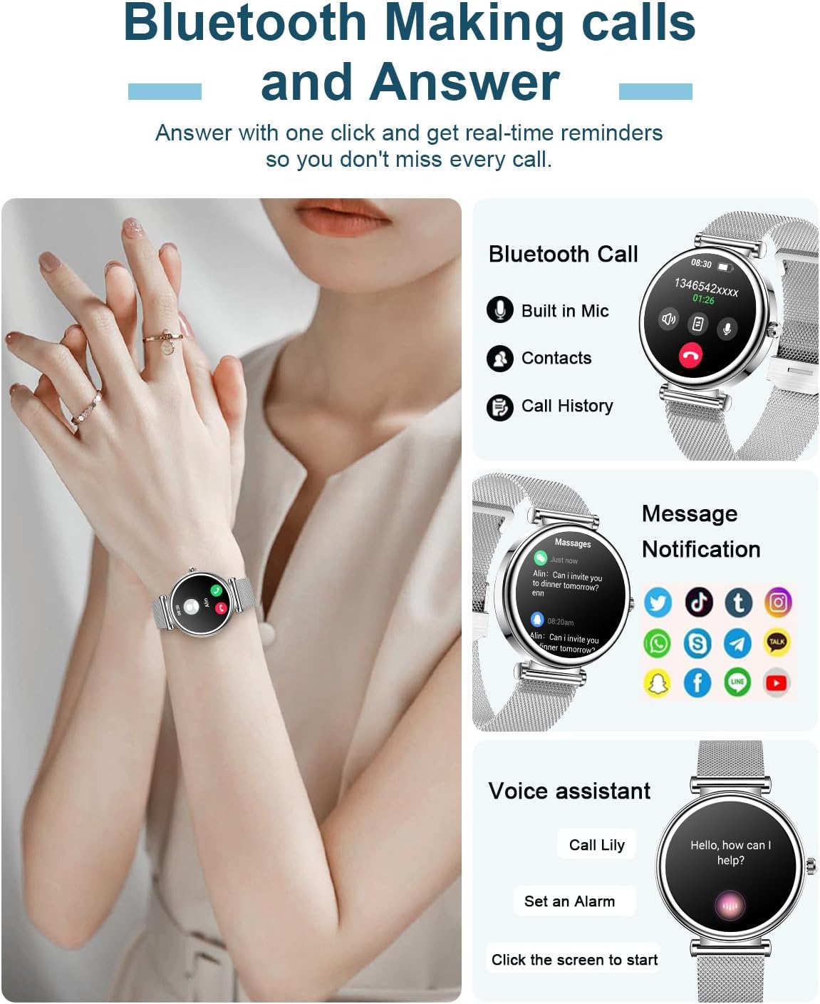 【Stay Connected All The Time】Indulge in the ultimate calling experience with this smart watches for women, boasting a built-in microphone and HD speaker. You can answer and make clear calls directly from your women’s watch, freeing your hands. Receive instant notifications from your favorite social platforms like SMS, WhatsApp, Facebook, and Instagram, ensuring you’re always in the loop. Plus, they’re designed to work seamlessly with AI voice assistants, making operation a breeze