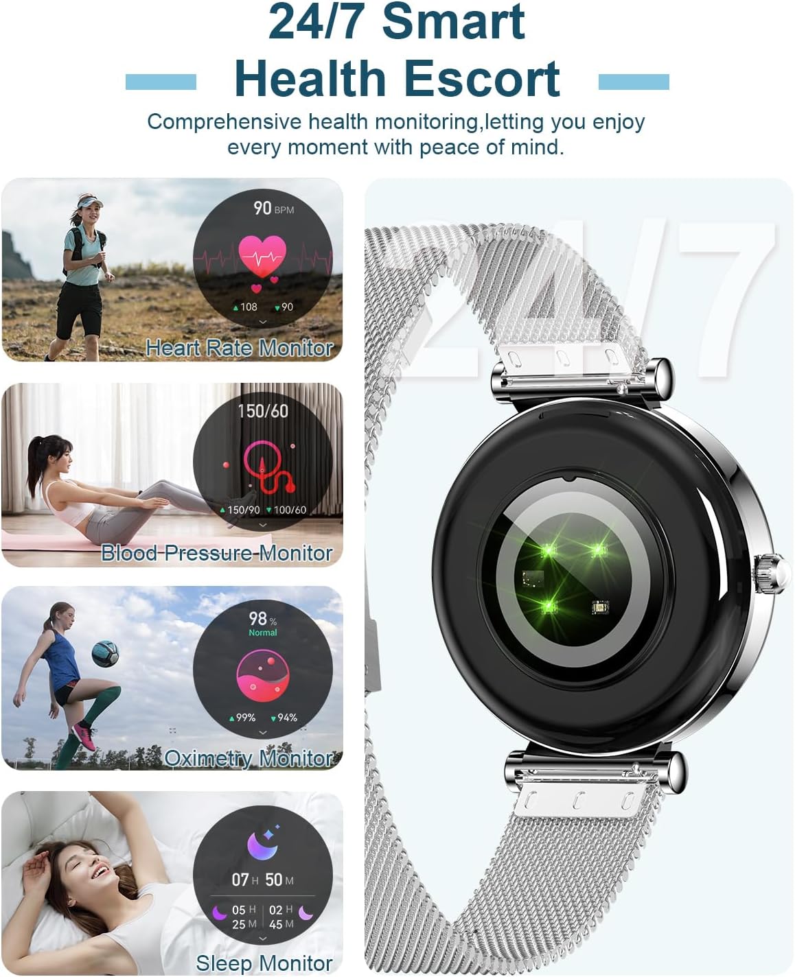 【Comprehensive Care for Your Health】This women’s smart watch is equipped with advanced optical oximetry and heart rate sensors that monitor 24/7 heart rate as well as SpO2 and blood pressure, so you can better understand your body data and make appropriate adjustments. In addition, this smart watch can also analyse your sleep quality, and create professional sleep reports on the app to help you develop a good biological watch
