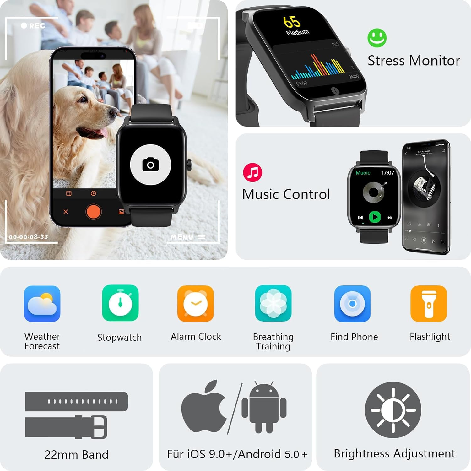 Blood Pressure Watch &Heart Rate Watch & Sleep Monitoring Smart watch: Fitness tracker watch uses high-performance sports optical sensors,which can monitor physical health indicators and accurately monitor your heart rate in real-time and blood oxygen, it will monitor your sleep status automatically period around and provides a comprehensive sleep quality analysis, which can help you better understand your health and adjust your lifestyle reasonably