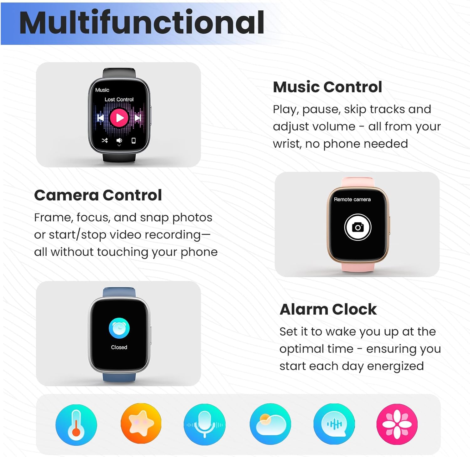 All-Day Health Monitoring: The smartwatch is equipped with a high-precision optical sensor that supports 24h real-time heart rate monitoring, helping you stay informed about your physical condition. It also intelligently analyzes sleep quality, accurately identifying deep sleep, light sleep, and awake phases to help improve your sleep habits. Paired with its dedicated app, you can view long-term health trends and receive personalized insights to gradually develop a healthier lifestyle
