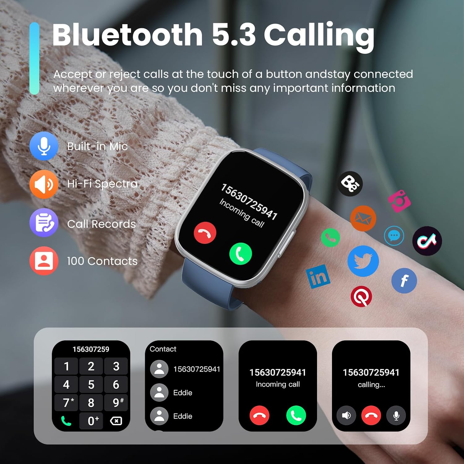 Bluetooth 5.3 Call and Smart Message Notification: The mens smart watch an advanced single-chip processor and a sensitive microphone, allowing you to make and receive calls without a SIM card. It also syncs contacts and stores call logs. With Bluetooth 5.3, it offers faster and more stable connectivity. This fitness watch provides vibration alerts for social media notifications—including Facebook, WhatsApp, Instagram, and Twitter—so you can view messages with a quick wrist raise