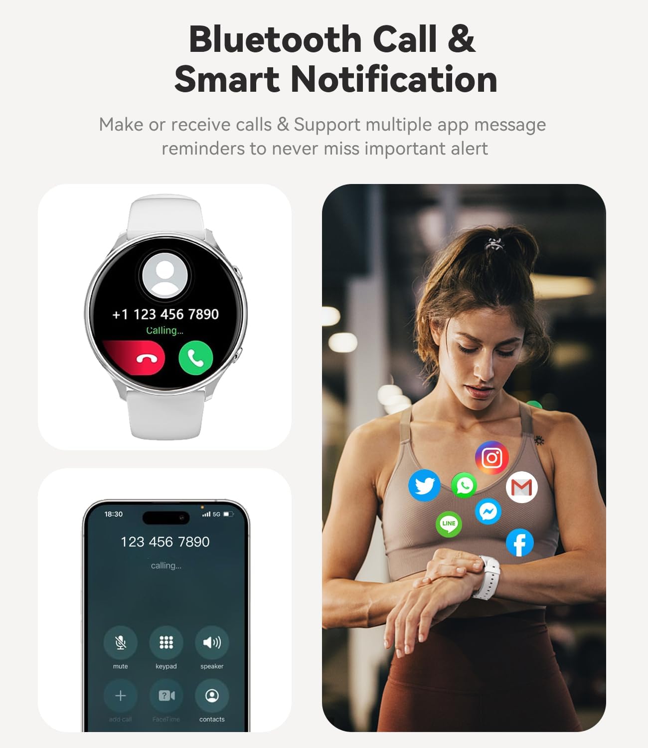 💎【Customize Personalized Dial & 2 Style Straps】The sports watch women has a 1.39″ HD touch screen with 360*360 HD resolution, flexible touch response, and detailed image quality, bringing you a unique visual and better interactive experience. And our android smart watch has more than 100+ different watch faces, you can choose different dials, and you can also customize your watch faces with your personal photos. Comes with 2 straps, one silver stainless steel band is sophisticated and the other white silicone strap is more casual. You can switch between classic and sport to ignite your passion for fashion.