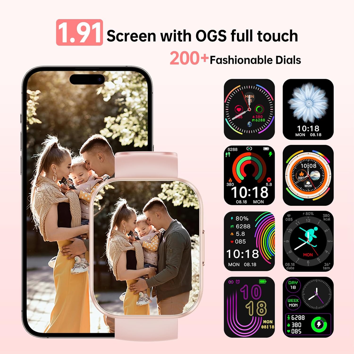 1.91” HD full-touch color screen & DIY Dials :smartwatches for men and women come with a 1.96-inch full-touch color screen for an ultra-sharp and wide viewing experience.The GloryFit app also offers more than 200+ online personalized dial backgrounds to choose from, and you can create DIY photos to customize your personalized dials.