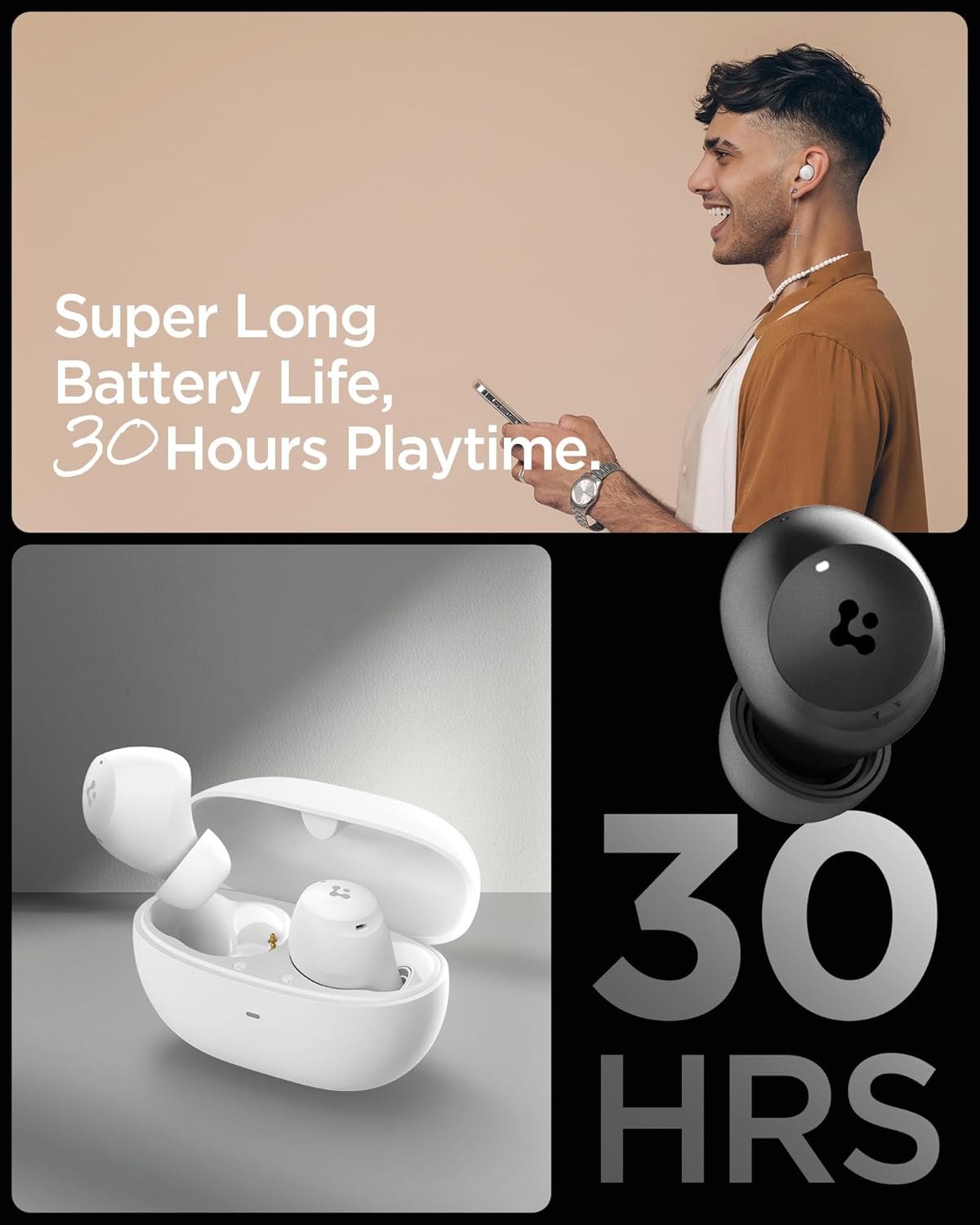 Spigen Audio True Wireless SA-TW P10 Wireless In-Ear Earbuds with 30 Hours Playtime, up to 40dB 4 Mu…