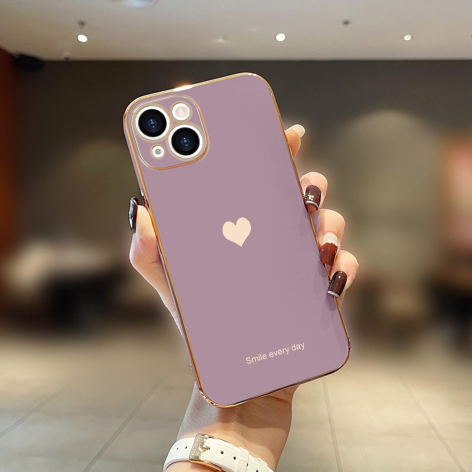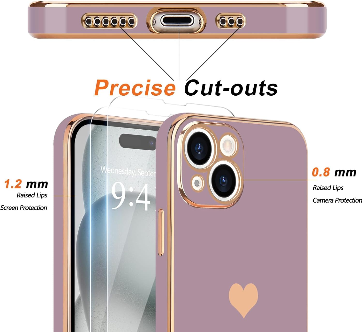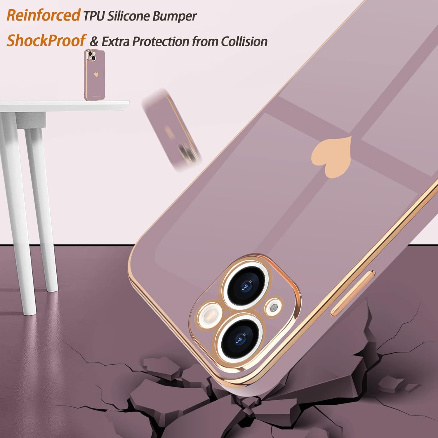 Cute Heart Phone Case for iPhone 15: Aesthetic gold heart pattern made with fade-resistant electroplating technology and paired with the shiny edge makes your phone look unique and has a beautiful, elegant look.