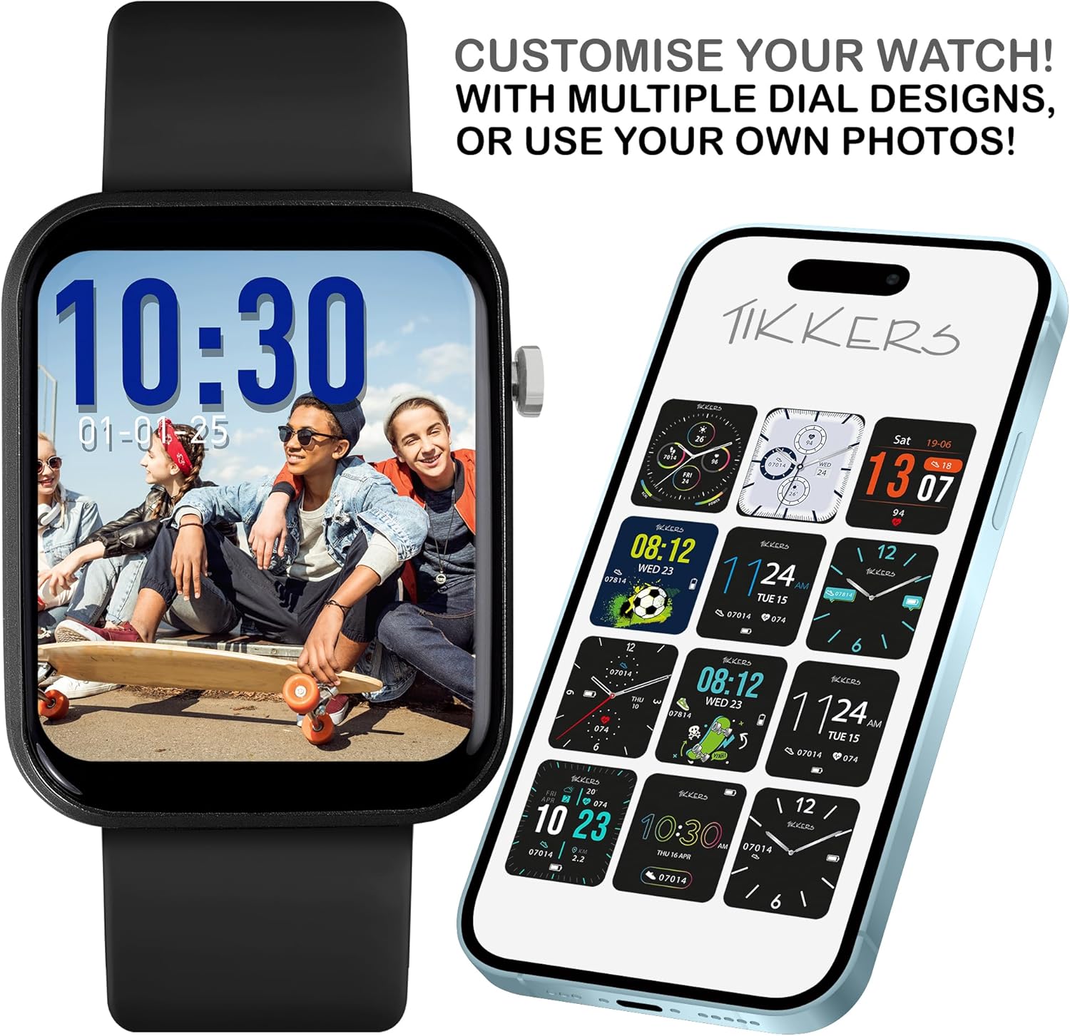 Let style-conscious teens customise their watch with a choice of vibrant dials, or they can personalise the display with a photo of their own!