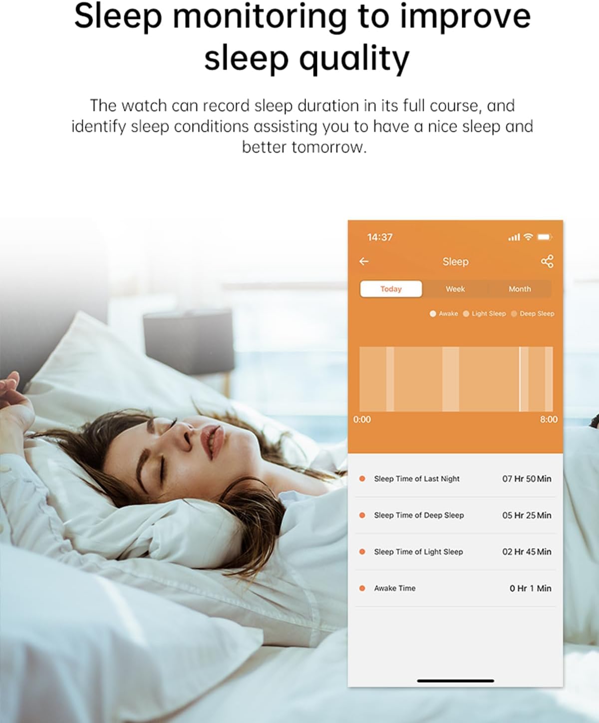 The WILLFITME fitness watch is your ultimate companion for tracking your activities and monitoring your health. Keep tabs on your daily steps, distance covered, and calorie consumption effortlessly. Equipped with advanced sensors, it also monitors-your heart rate, and sleep more patterns. All of this valuable data can be seamlessly synced to your phone for analysis, empowering you to gain a deeper understanding of your well-being and make necessary adjustments to your lifestyle.
