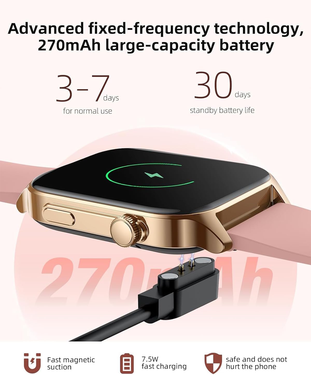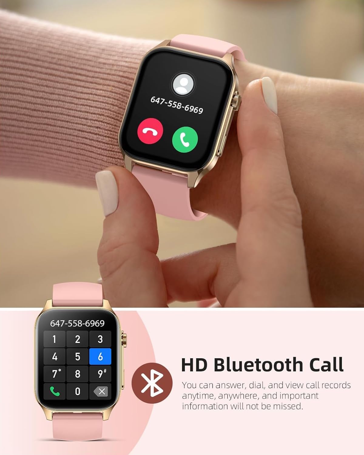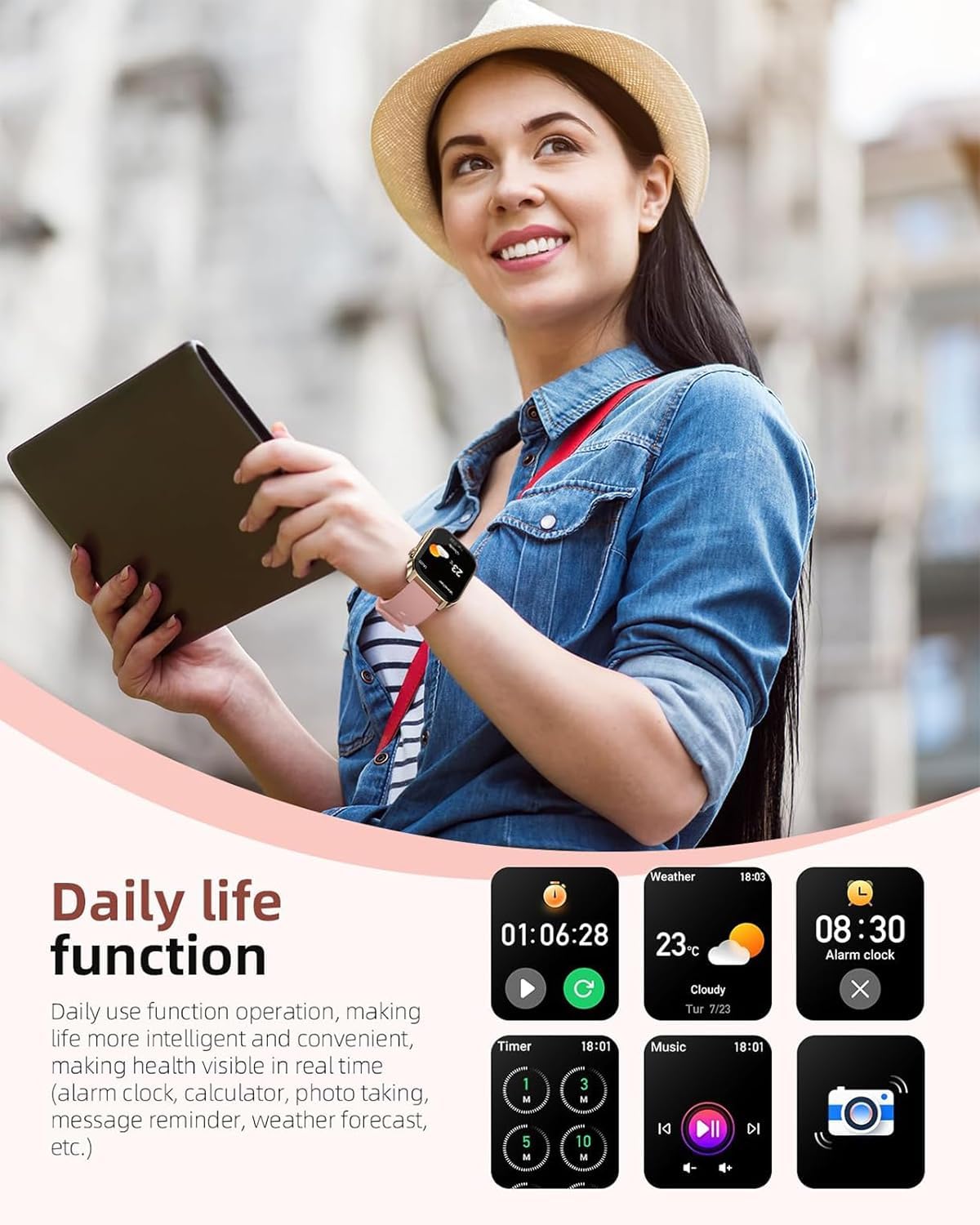 【20 Sports Modes and 5ATM Water Resistance】With 20+ built-in Sport modes and 5ATM water resistance, smart watches for women meets most sports enthusiasts` needs. Fitness tracker for women and men provides fitness data, including calories, steps, distance, and workout time, generate fitness report after a workout