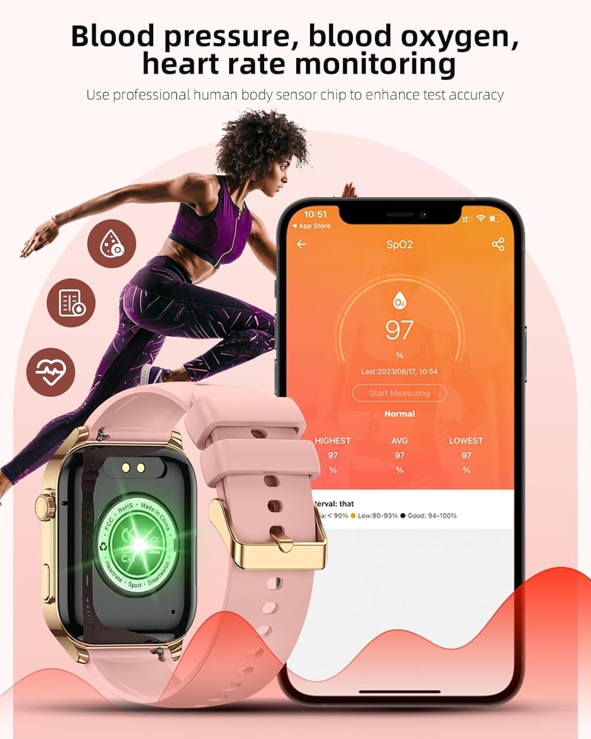 【24-Hour Health Guard】Smart watch with text and call provides health -Monitoring features such as real-time Heart Rate, blood-O2 (Sp02-), and Sleep -Monitoring(Deep/light sleep). smart watch for android phones intelligently -Monitors current stress levels, we always care about the health of each customer