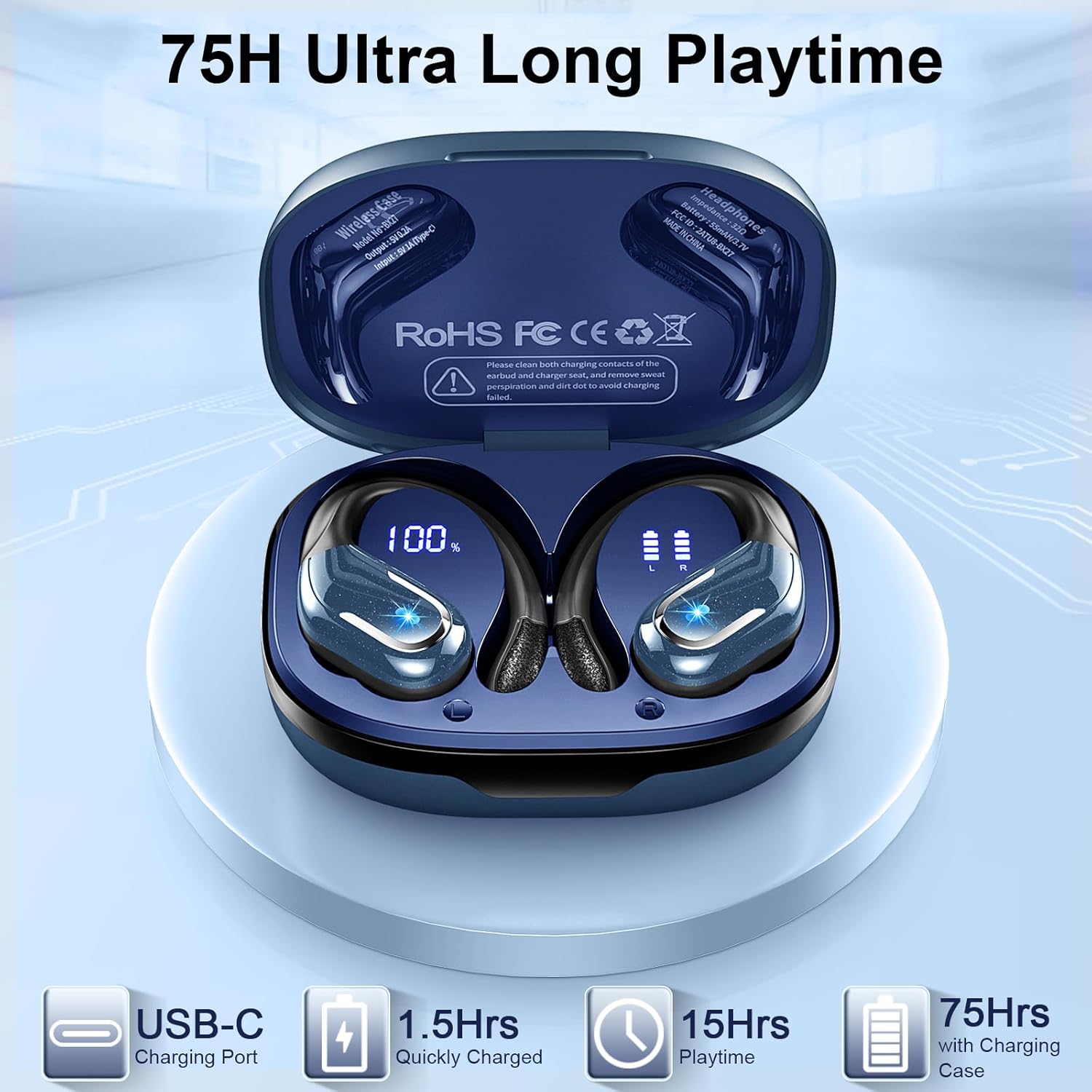 Wireless Earbuds, 75H Bluetooth 5.4 Headphones Sports with ENC Mic, Stereo Noise Cancelling Ear Buds…