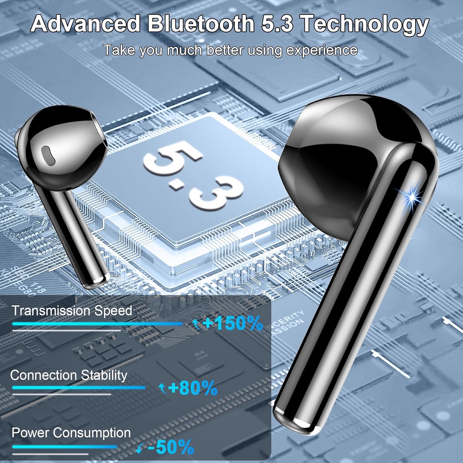 2025 Innovative Bluetooth 5.3 Technology & Auto Pairing: The advanced Bluetooth 5.3 technology provides a faster, more stable connection for the wireless earbuds, syncs audio and video without latency. With a range of up to 50 feet, whether you are at home, in the office, or on the road, you don’t have to worry about disconnection. After the first pairing, simply remove both bluetooth headphones from the charging case to connect automatically. Rid of cord, enjoy true wireless.