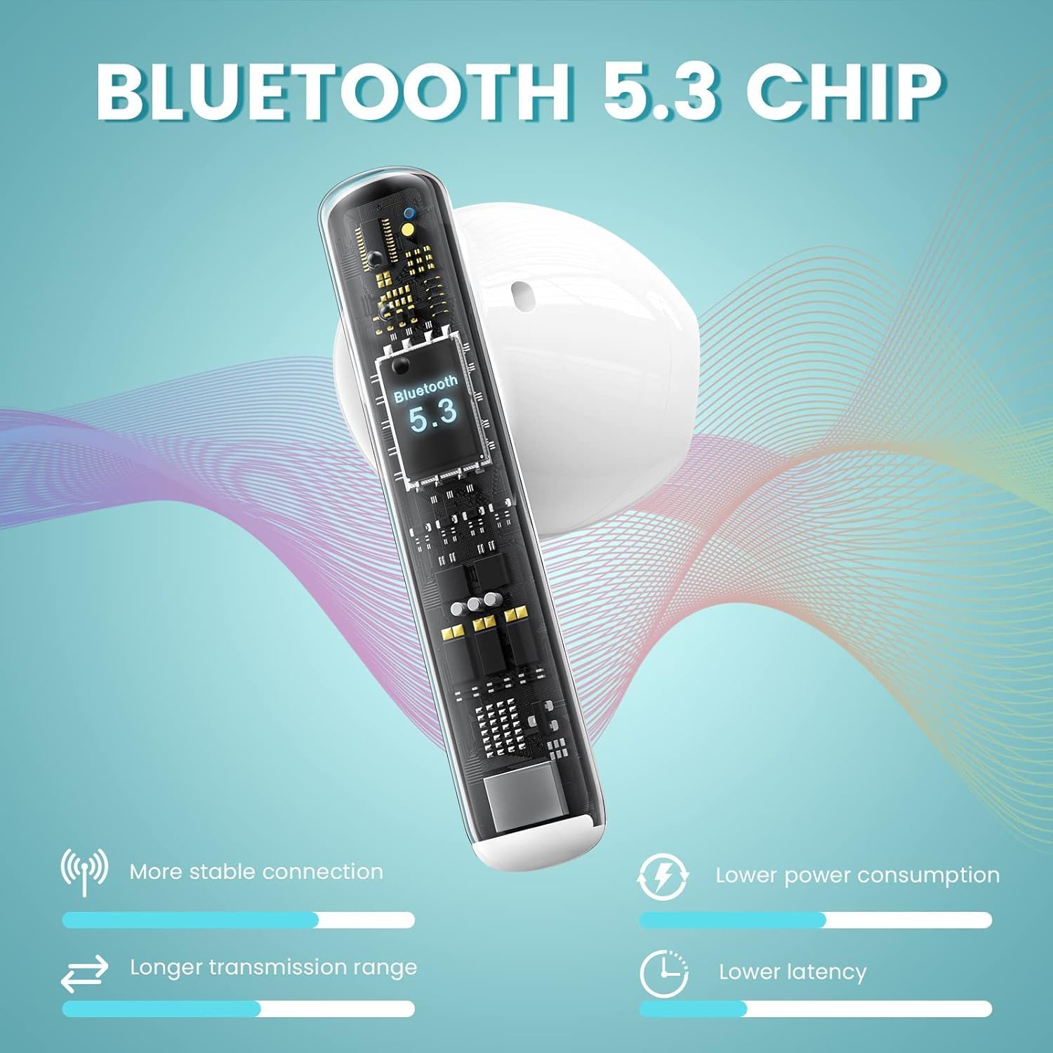 Stable Bluetooth 5.3 Connection & Auto Pairing: Boasting the latest Bluetooth 5.3 technology, the earphones ensure a remarkably stable connection, swift transmission, and a substantial connection range (up to 50ft, about 15m).