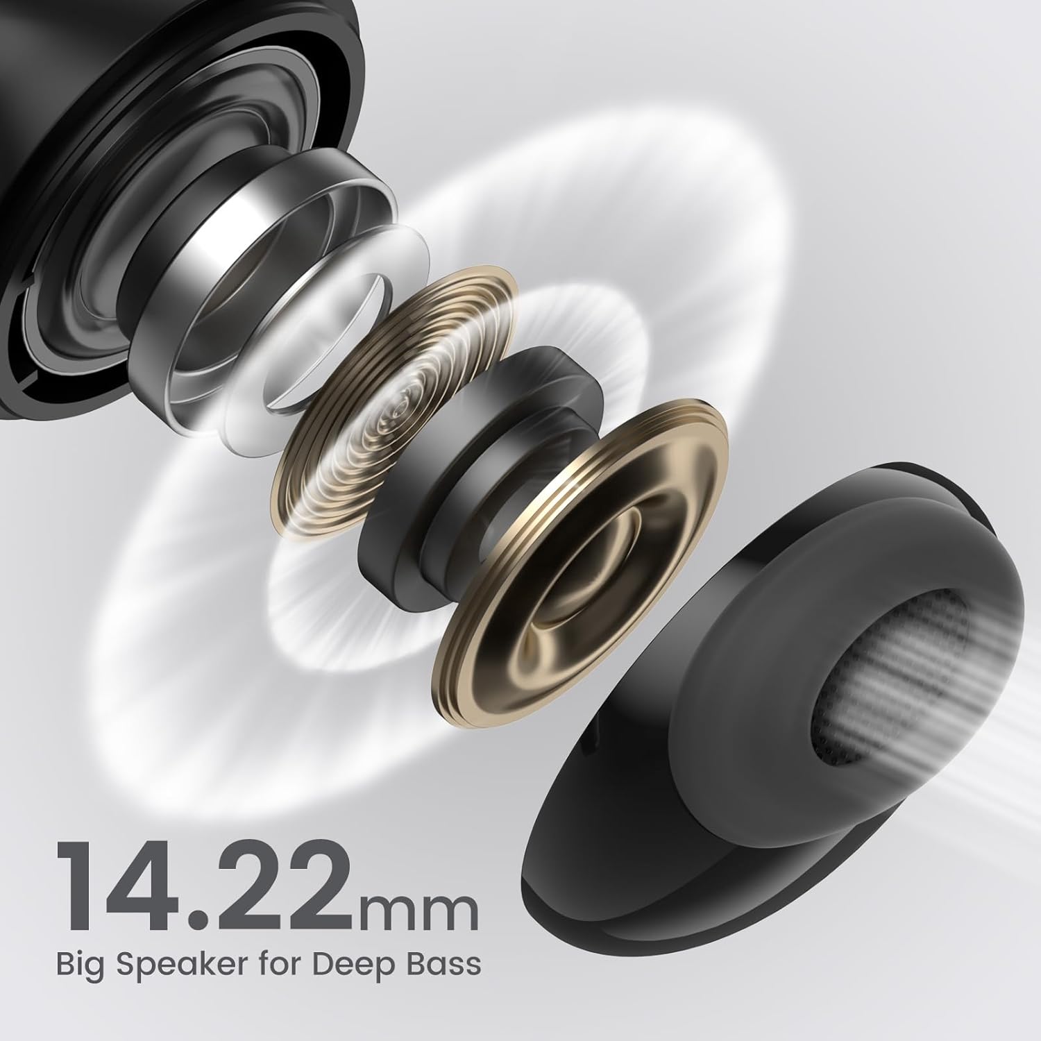 Immersive Stereo Sound & Superior Clear Call: True wireless earphones features 14.22 mm speaker drivers for powerful sound, with stronger bass without being muffled, brighter and clearer mids, and louder treble without harshness. Our bluetooth earphones are equipped with four microphones, delivering excellent call performance. They make calls clearer and noise-free, allowing you to enjoy a truly immersive stereo audio experience.